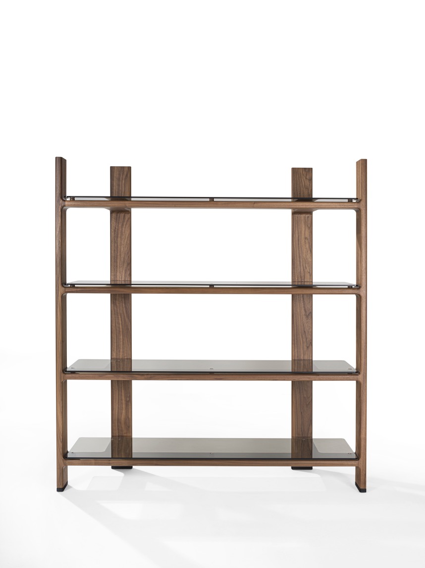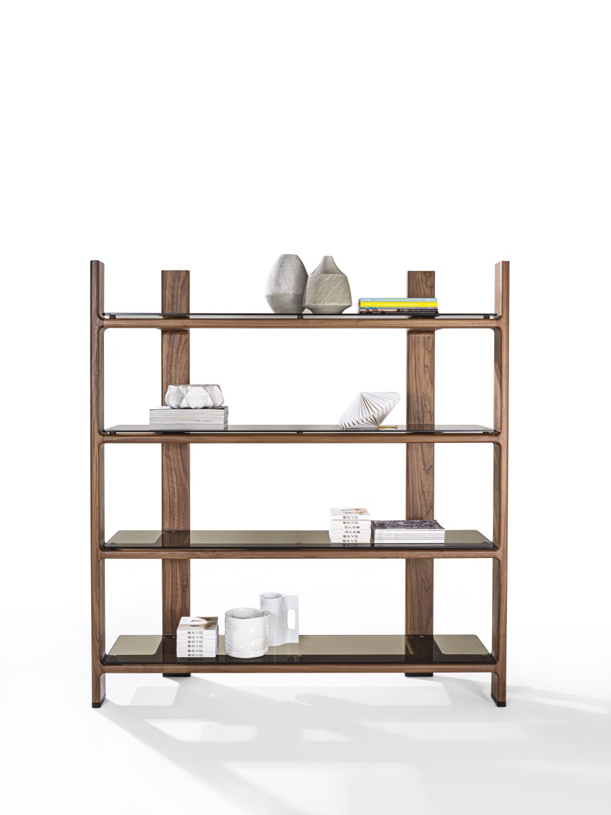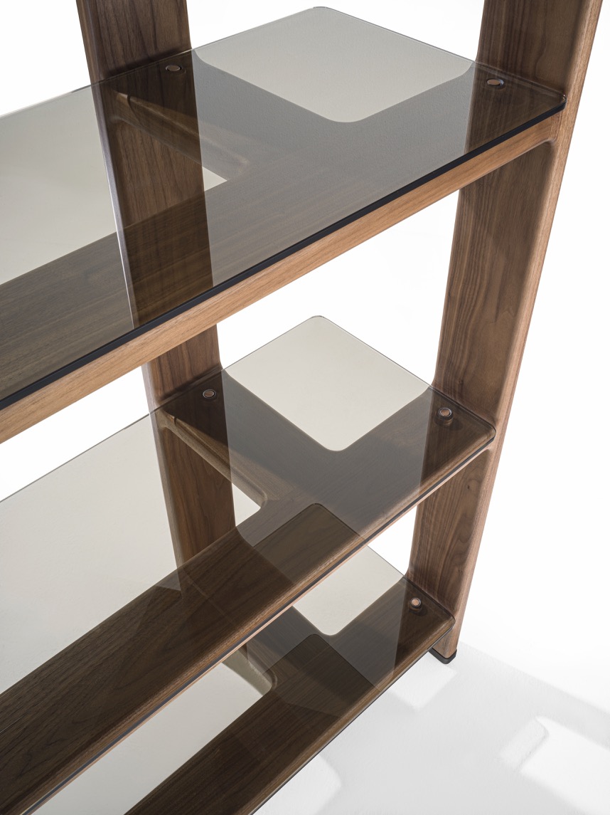 A very important section characterized by joints executed according to a tradition cabinetmaker, returns a poetic materiality and plasticity to a material as warm and noble as wood. Interspersed with horizontal glass planes, which create an apparent formal simplicity, the whole collection expresses a strong character and refined elegance that allows it to find an easy placement in domestic spaces as well as in important collective spaces.