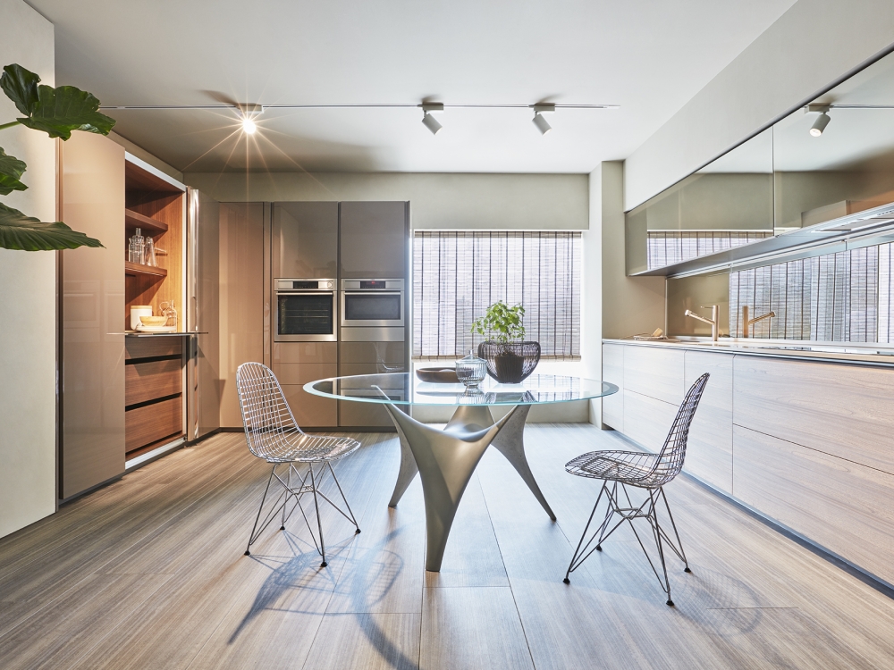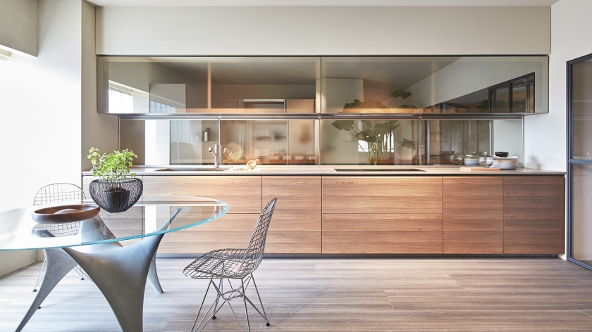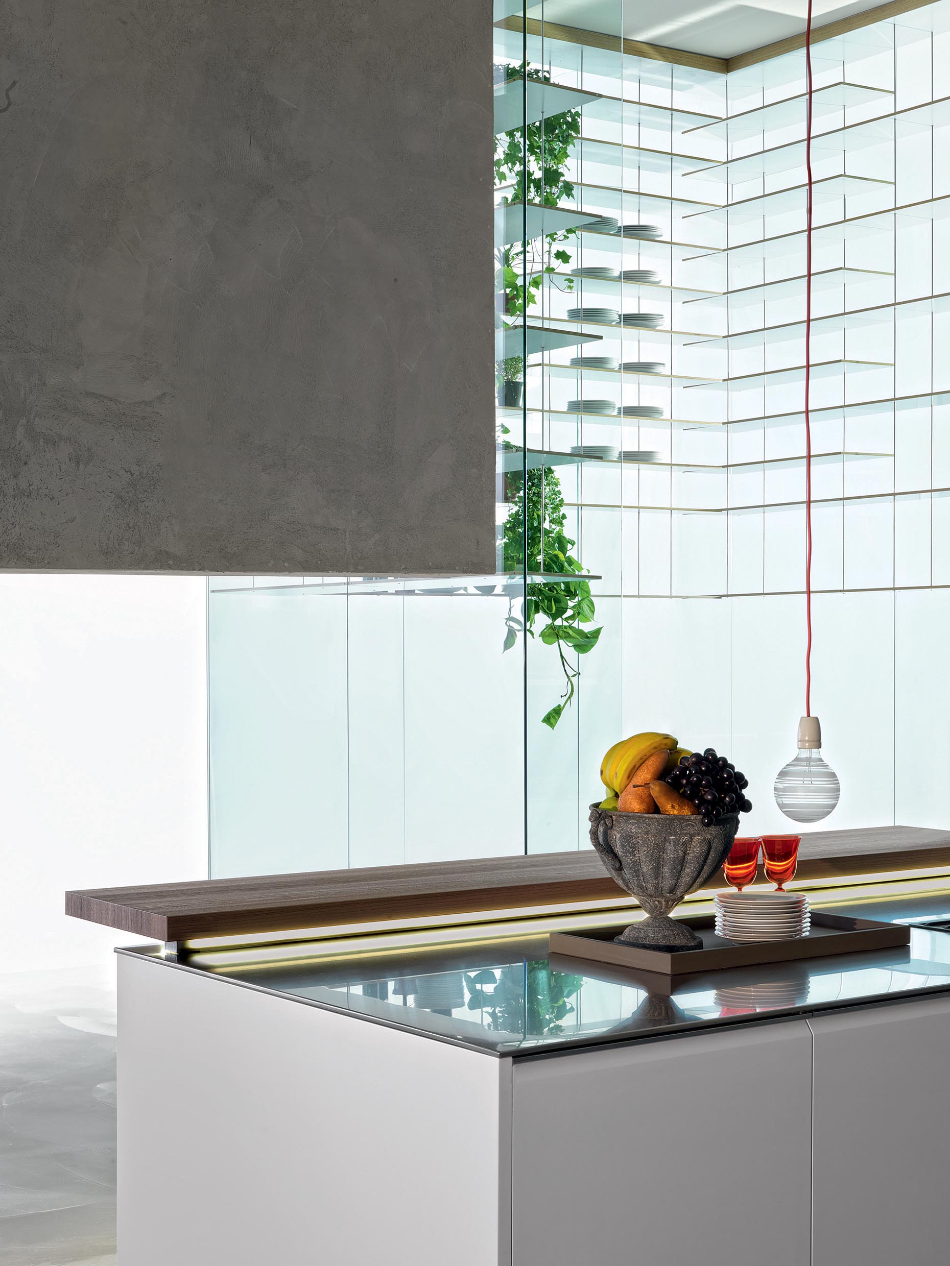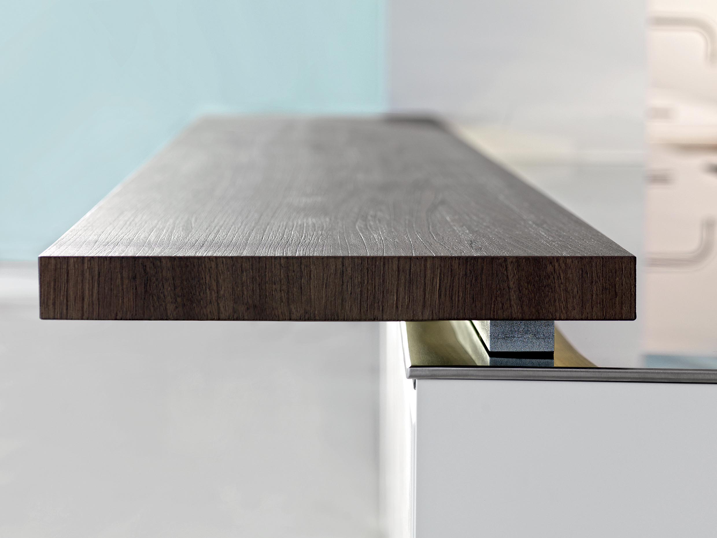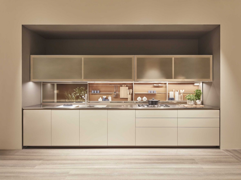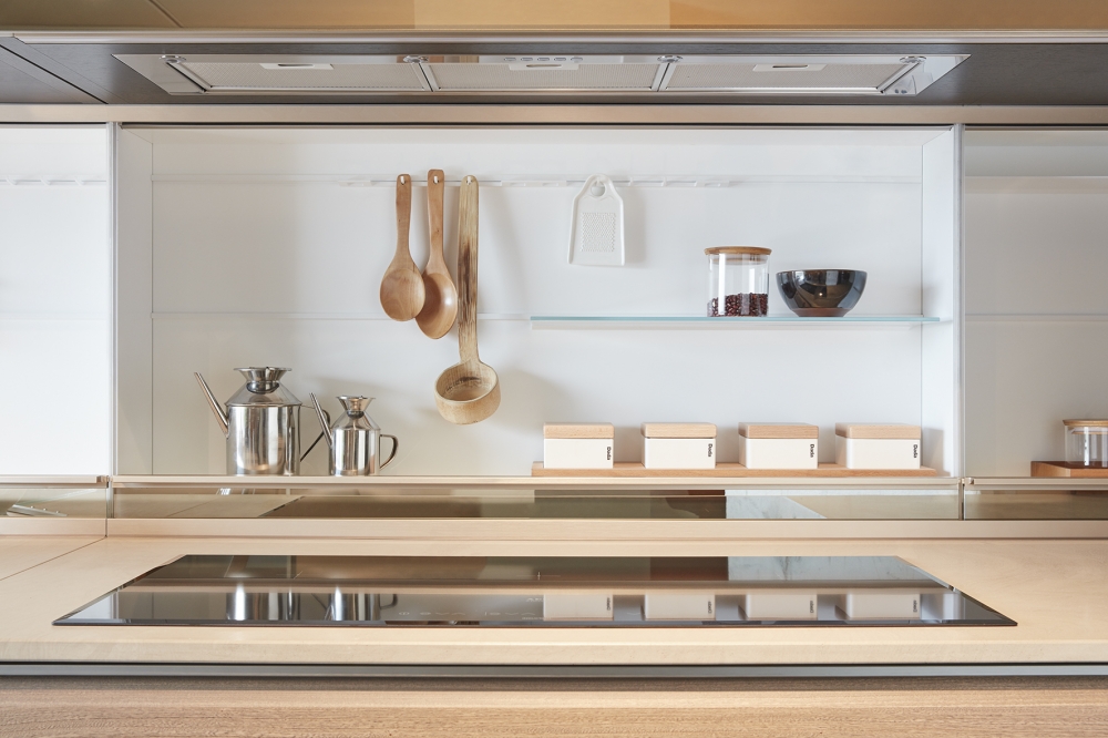 抽屜、柜門和懸拱是遠遠不夠的。 這就需要使用一種特殊的后方裝置,在懸拱和作業面之間形成可以放入Dada專利機制的一個空間以及滑動式隱藏的玻璃材料。 LED燈和電源插座有助于調節依靠核心科技為Trim系列安裝的背面。