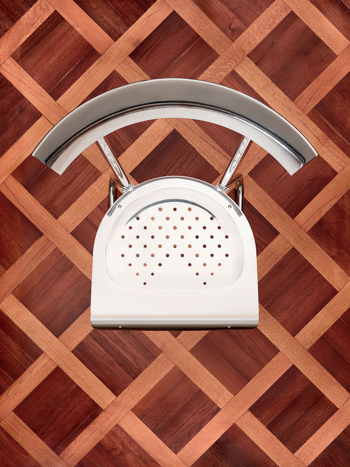 Gio Ponti于1935年為米蘭Largo donegani區的蒙特卡蒂尼大樓做了整體設計,從建筑設計和到家具設計包括桌子、燈具、衣柜。椅子的最初是為1935的米蘭蒙特卡蒂尼大樓而設計。基于Gio Ponti檔案館的原始圖紙加以適當調整為現在的這張椅子。完全由拋光鋁材制成。