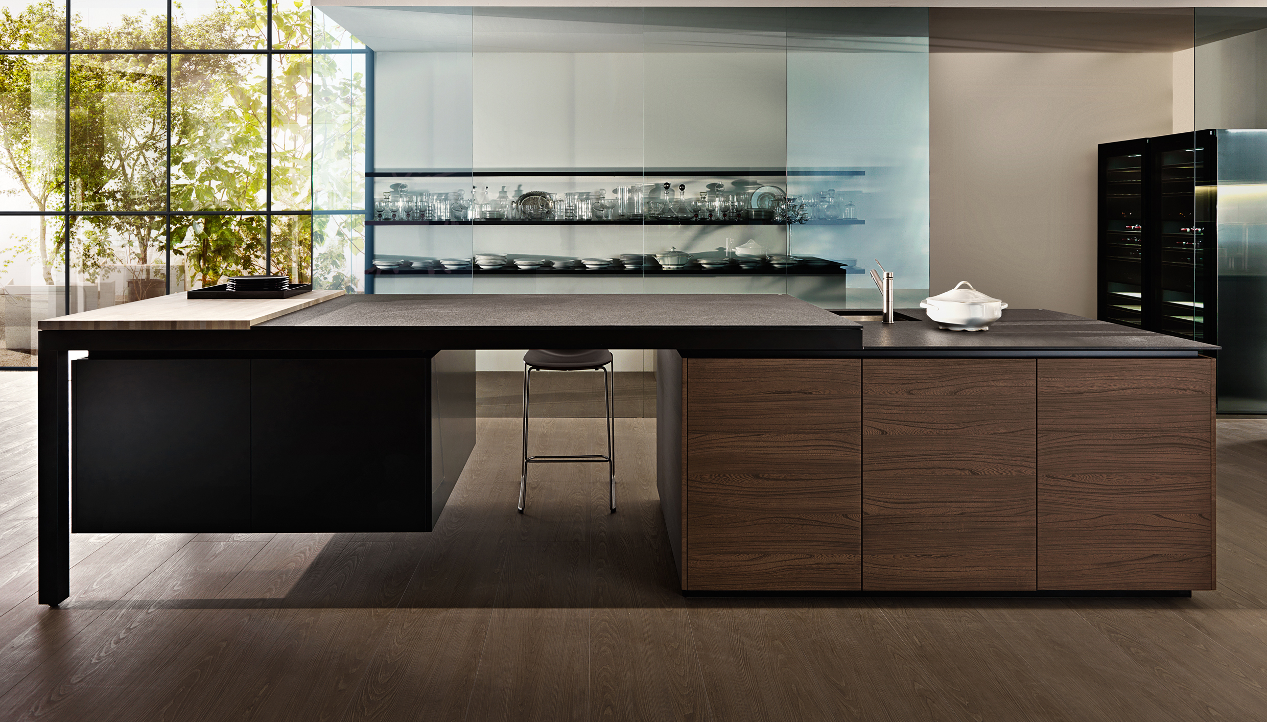 Banco, created by Luca Meda in 1994, concentrates the main cooking and washing functions in the free-