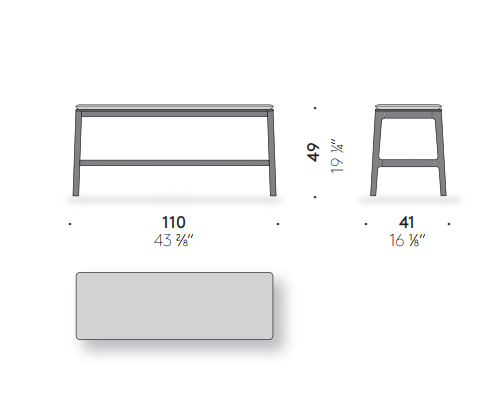 The same seams are found in the furnishing accessories such as the leather benches and trays.