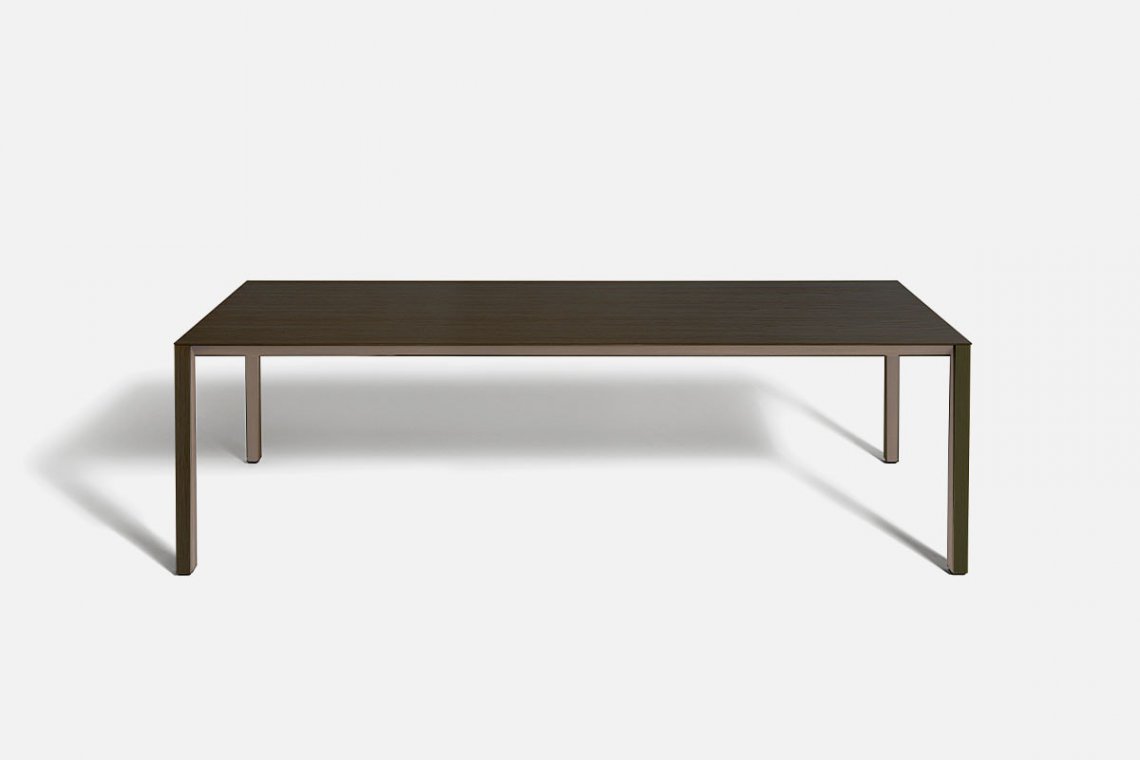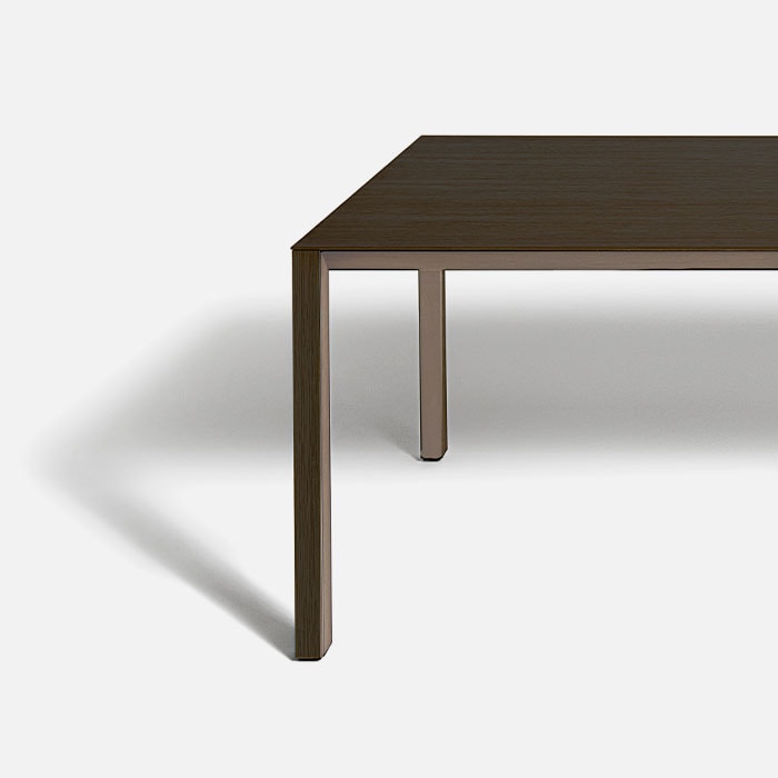 The strength of this project lies in its details. The meticulously designed inner trim, corners and legs create an optical effect that changes from different points of view. The Shadow table is minimalist, discreet and absolutely contemporary. Ideal in the living room or as a work table, it is quite versatile due to its square or rectangular shape and the combination of different wood essences and finishes for the table top, trim and legs.