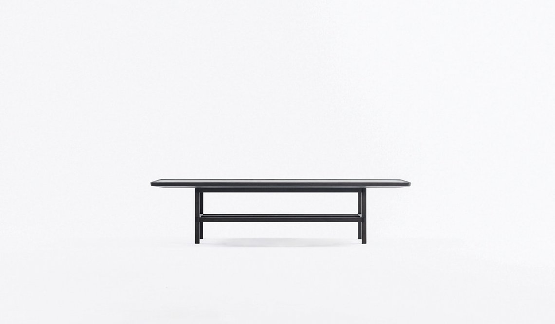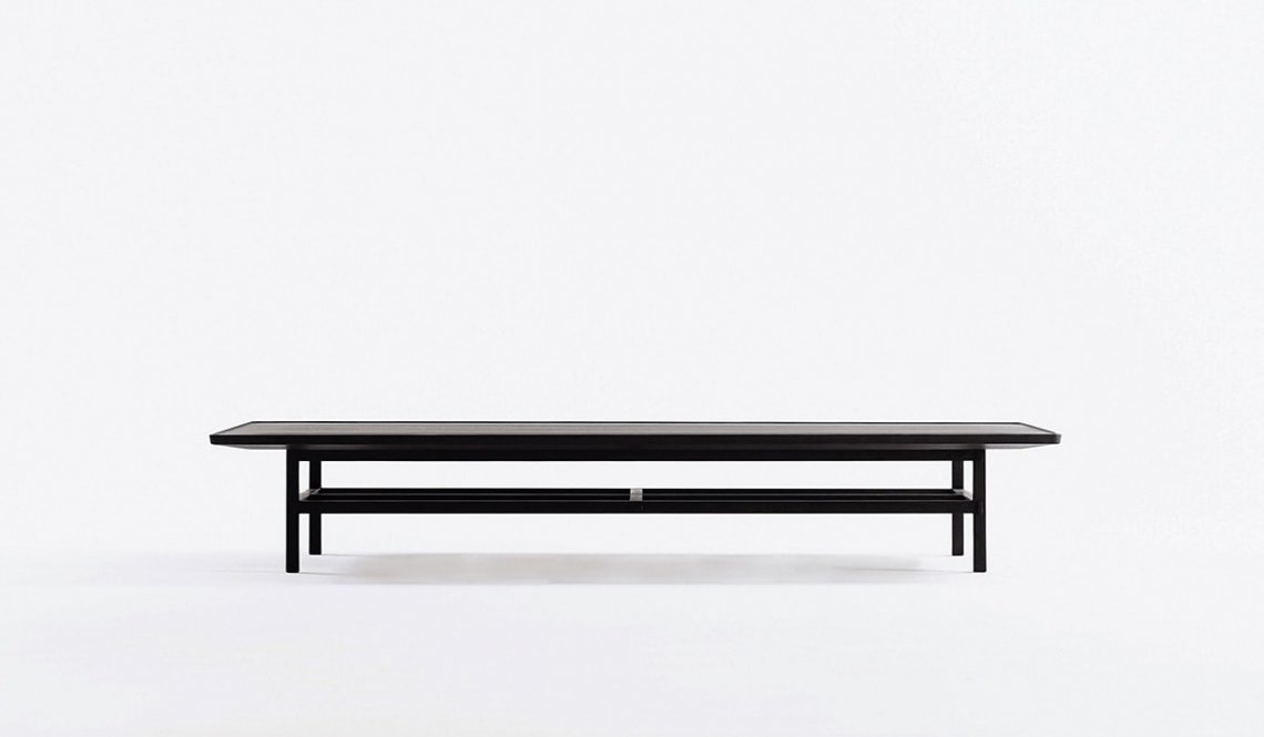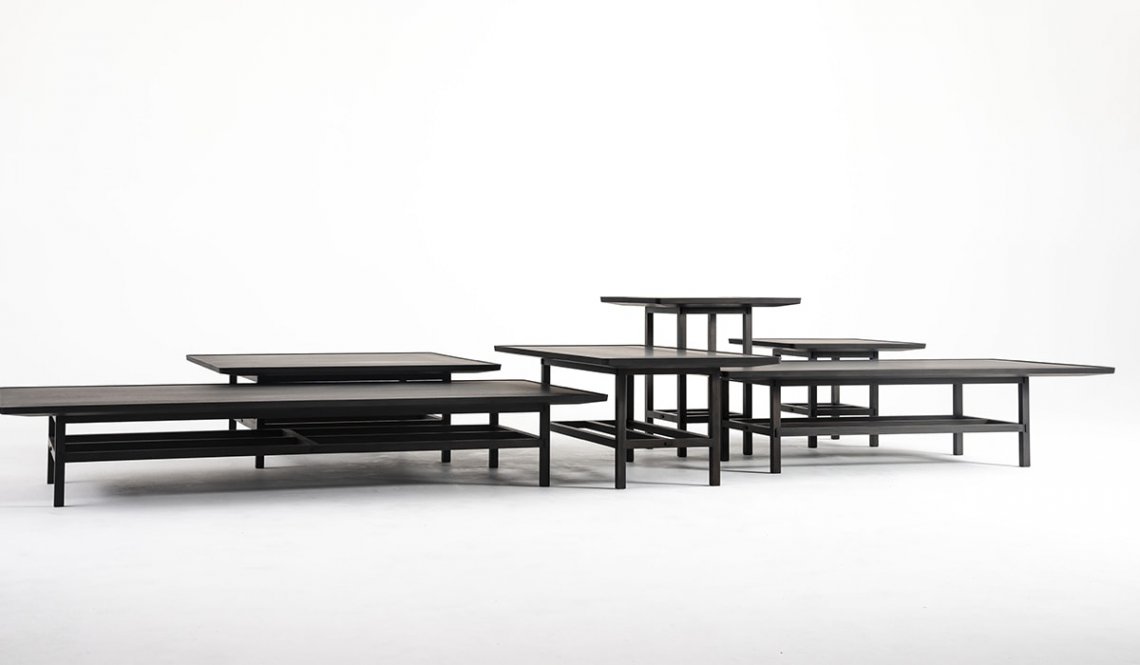 Classical Japanese architecture is the guiding thread for this series of tables with different heights, shapes and sizes. They interact with one other, creating real interior landscapes. The slender legs are stabilized by the artisan joinery of the horizontal elements intersecting at different heights to create eclectic, stackable combinations. Temple is available in bleached and charcoal gray oak wood.
