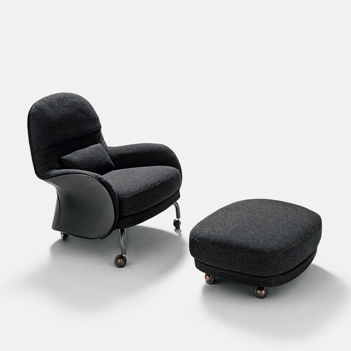 Excellence in raw materials, artisan crafting and design. Louisiana is the armchair designed by Vico Magistretti inspired by a saddle: the stitching follows the rounded curves, and the leather becomes more and more beautiful with the passage of time. Cotton tape trims the removable inner lining. Together, an armchair and pouf create the most comfortable relaxation corner in the world, right at home.