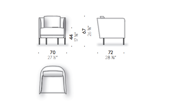 Blendy’s world is ready to take on different colours and fabrics in every possible variation of the project: Blendy, Blendy Lounge, Blendy Movie and, from this year, Tiny Blendy. The recognisable lines of the armchair’s 2022 version feature a new stylistic design running through it, the deep and comfortable structure has been resized and reproportioned relative to the more cumbersome, previous dimensions, packing Tiny Blendy with improved versatility for living spaces, even as a pair. The common thread remains the same: a design capable of significantly altering a living room’s atmosphere through the considered choice of the leather/fabric combination for the external and internal upholstery.