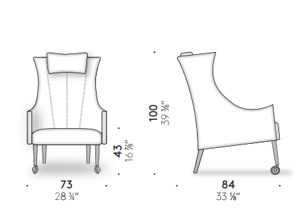 Clean lines and a rational structure. Tondo is the classic bergère redesigned with the unmistakable touch of Vico Magistretti. It has a high back and comfortable headrest. The feet are in steel with swiveling castors on the front or in natural oak or oak with a wengè finish. Its compact, rounded shapes make it the perfect addition for the living room, creating a cozy and discreet reading corner, or for the bedroom.