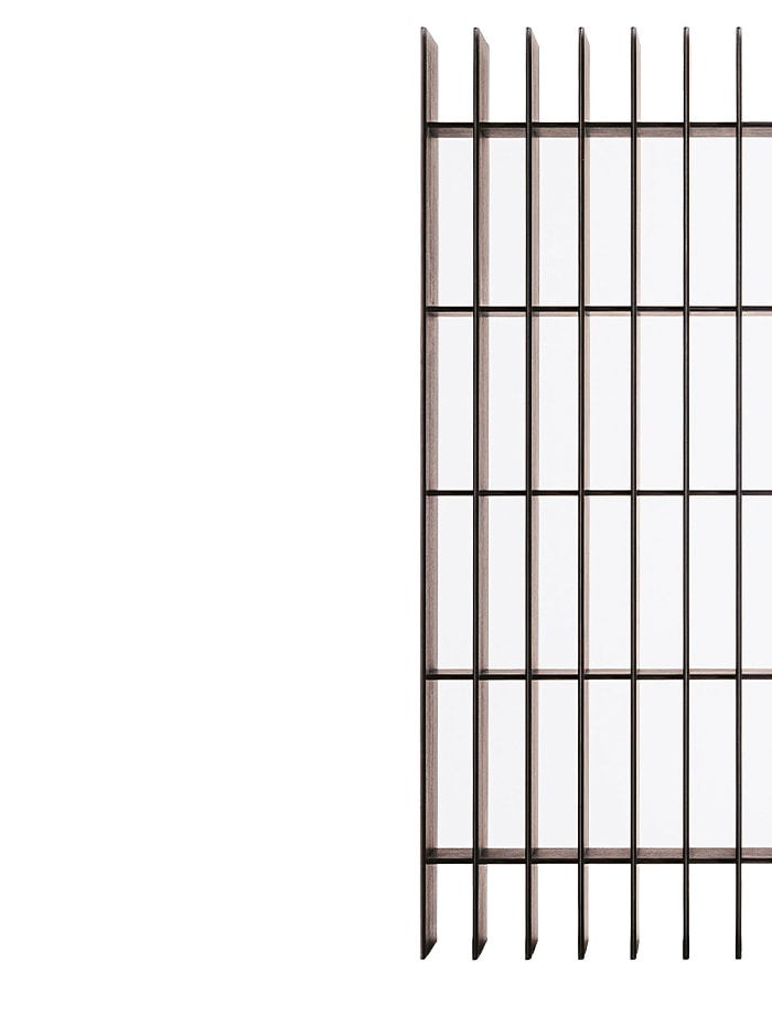 Symmetry, repetition, rhythm, balance, and proportion. Based on these elements, the Vertical layer cabinet is carefully constructed by combining vertical and horizontal panels. Time & Style determined the shelf dimensions using shakkan-ho, an ancient Japanese measuring system based on body measurement. In Japan, the shakkan-ho system is still widely used for units related to architecture and a few other aspects of daily life, including the ‘sun’ and ‘shaku’ units for length, and the ‘tsubo’ and ‘chou’ units for area. Inspired by a graceful high-rise building, Vertical layer quite literally emphasizes its vertical panels by setting back the horizontal shelf boards.