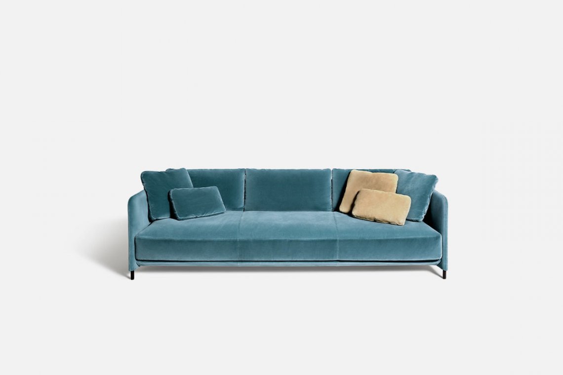 A variation on the theme: the compact and rounded sections of the Blendy collection are completed with a sofa and armchair that have been slightly restyled in the proportions. They have the same line as designed by Omi Tahara, but are distinguished by the height of the seat, the smaller feet and the single cushion, which in the Lounge version comes in two lengths. The result is balanced and cohesive.