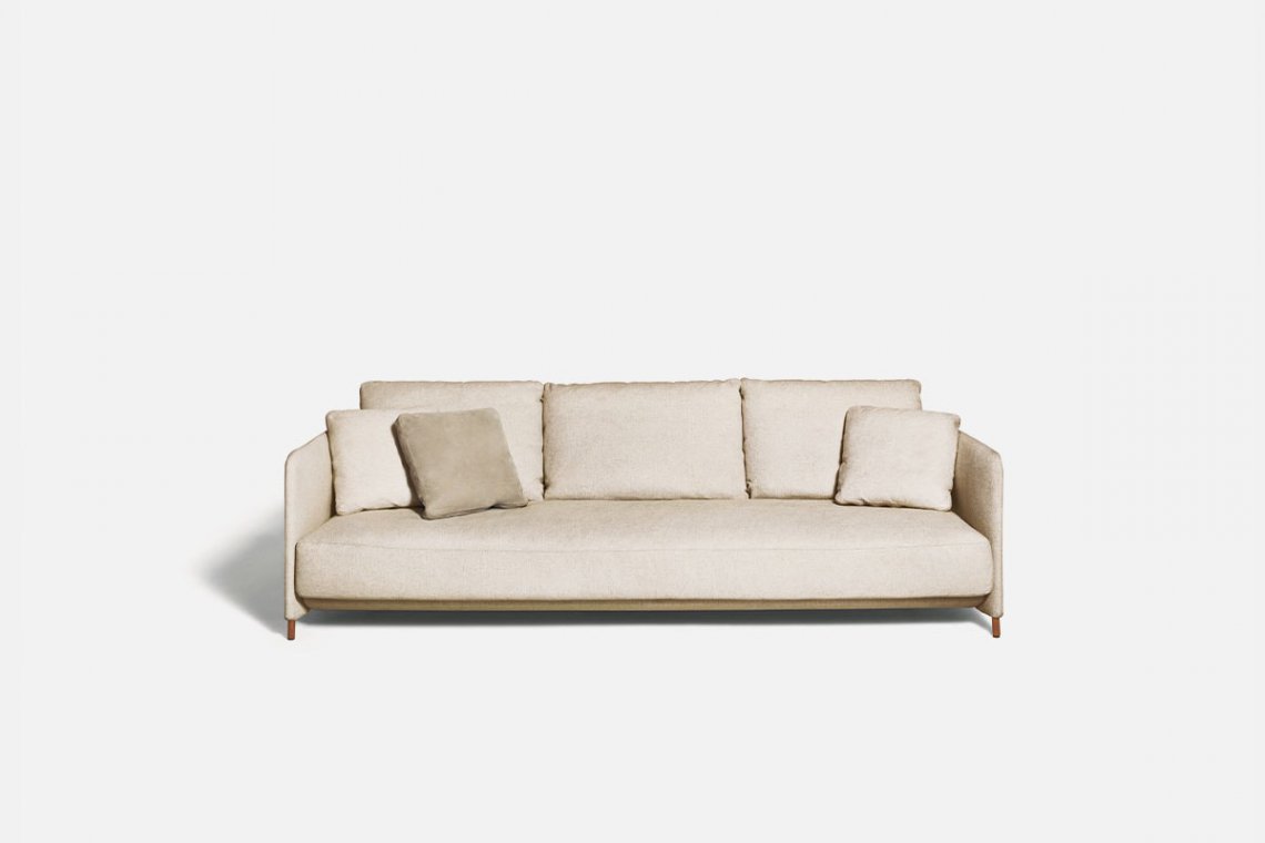 A variation on the theme: the compact and rounded sections of the Blendy collection are completed with a sofa and armchair that have been slightly restyled in the proportions. They have the same line as designed by Omi Tahara, but are distinguished by the height of the seat, the smaller feet and the single cushion, which in the Movie version comes in two lengths. The result is balanced and cohesive.