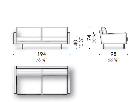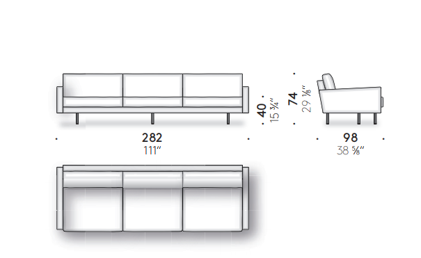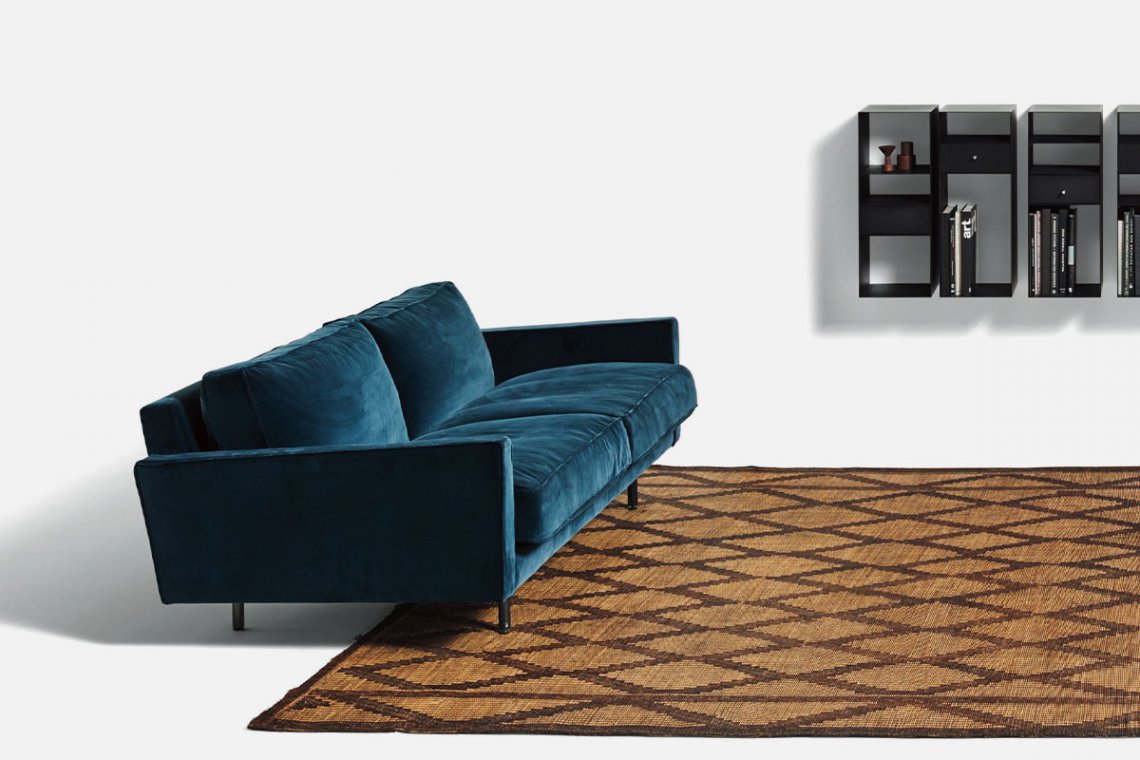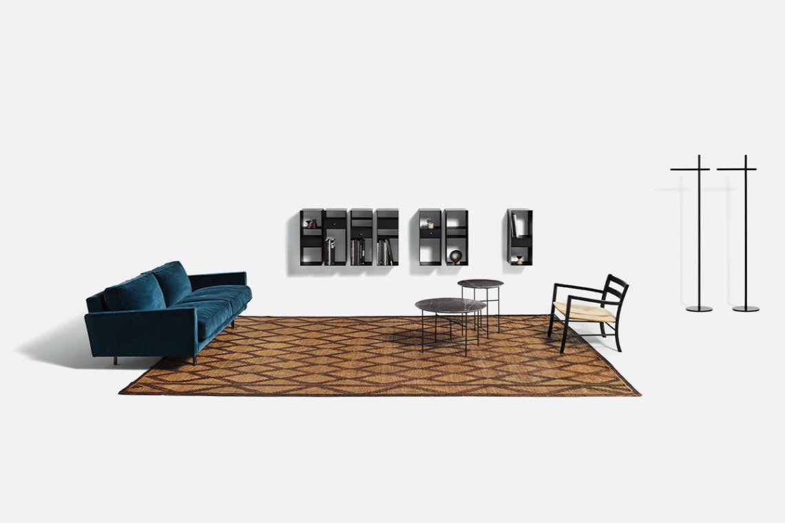 Traditional reinterprets the geometric features of the original version of Square through subtraction, making it lighter without losing the sleek simplicity of its forms. Without side cushions as armrests and with painted steel feet, the two or three-seater Square Traditional has a minimalist look and is extremely versatile.