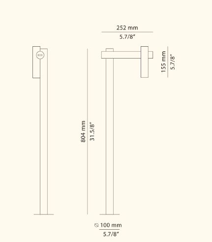 Metallic outdoor bollard light. Integral LED providing direct light.