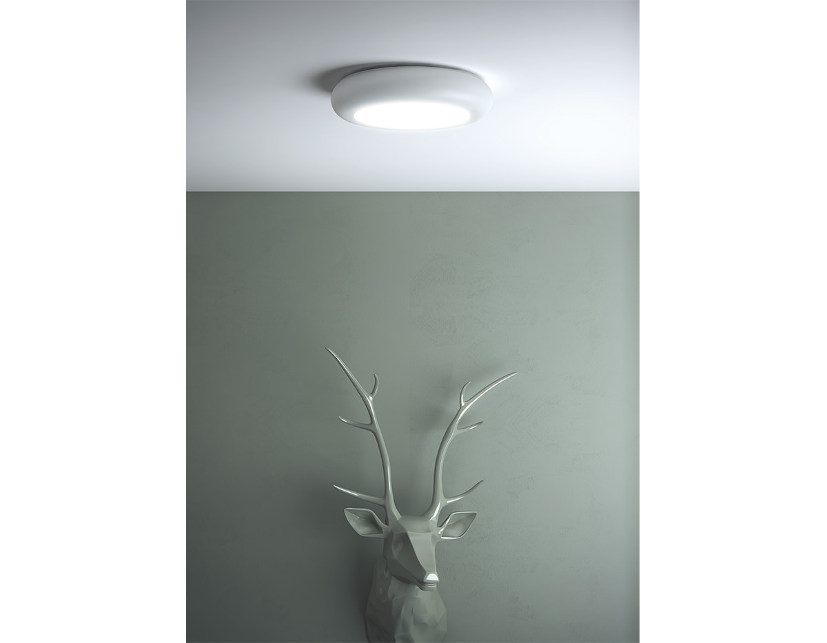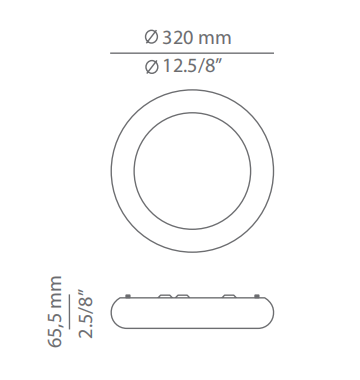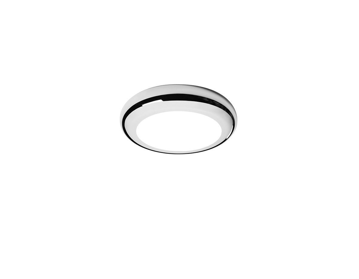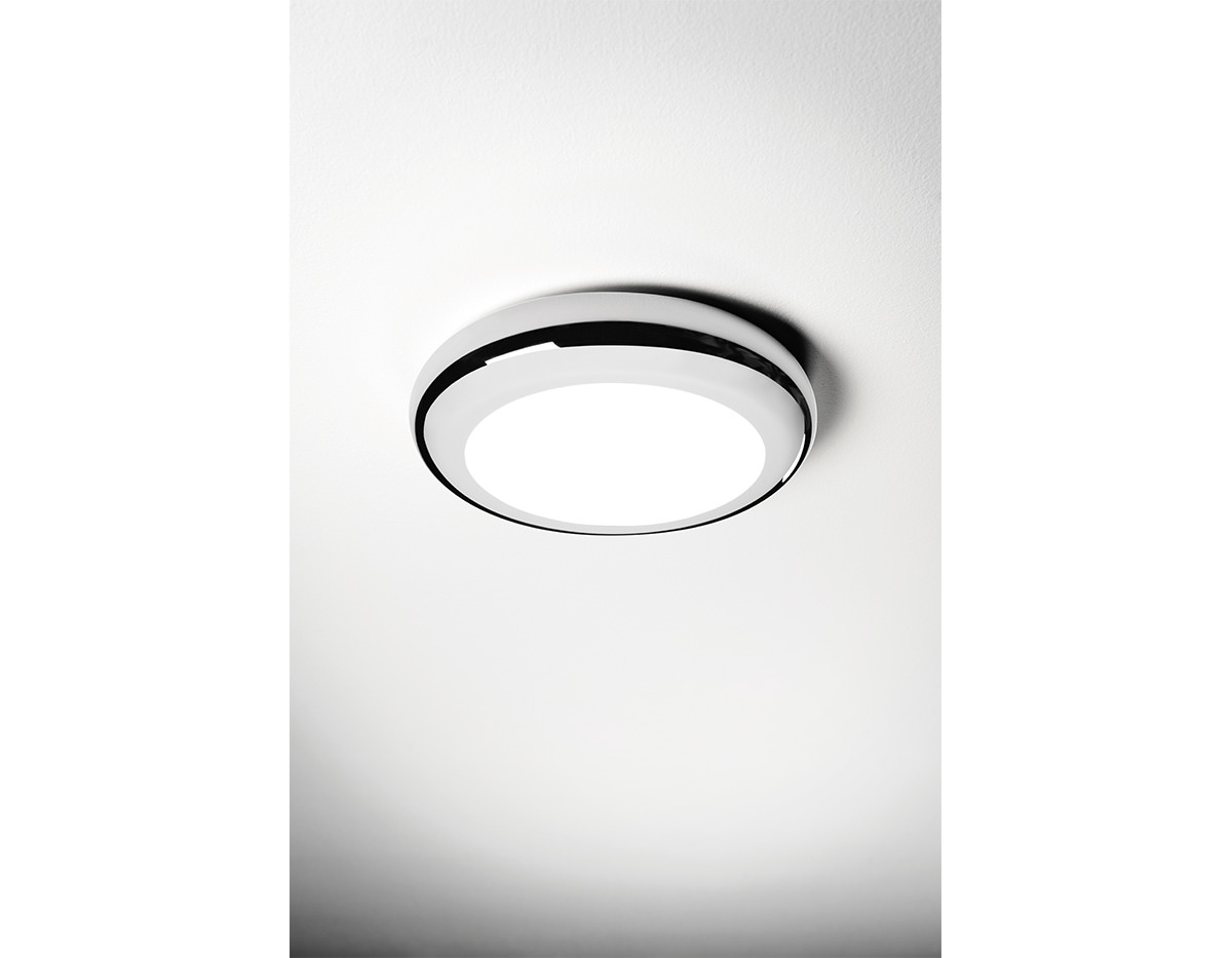 Metallic wall lamp with two different diameters. Acrylic diffuser and integrated dimmable LED.