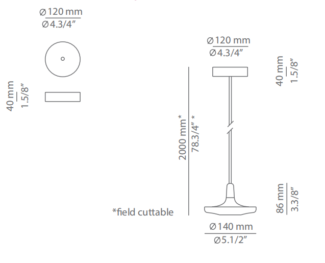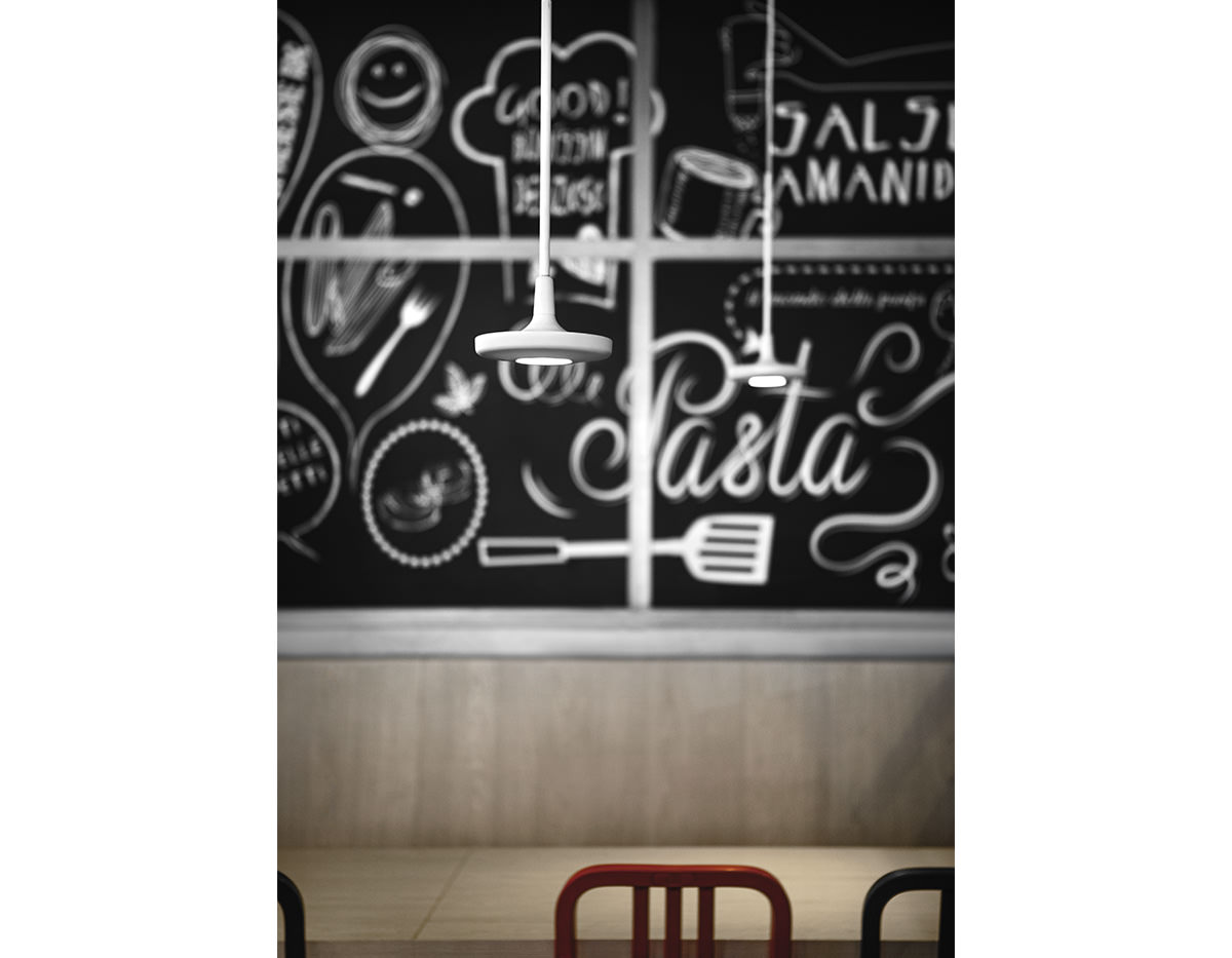 Metallic suspension lamp with aluminium shade and integrated dimmable LED. Adjustable height and individual canopy, suitable for creating compositions.