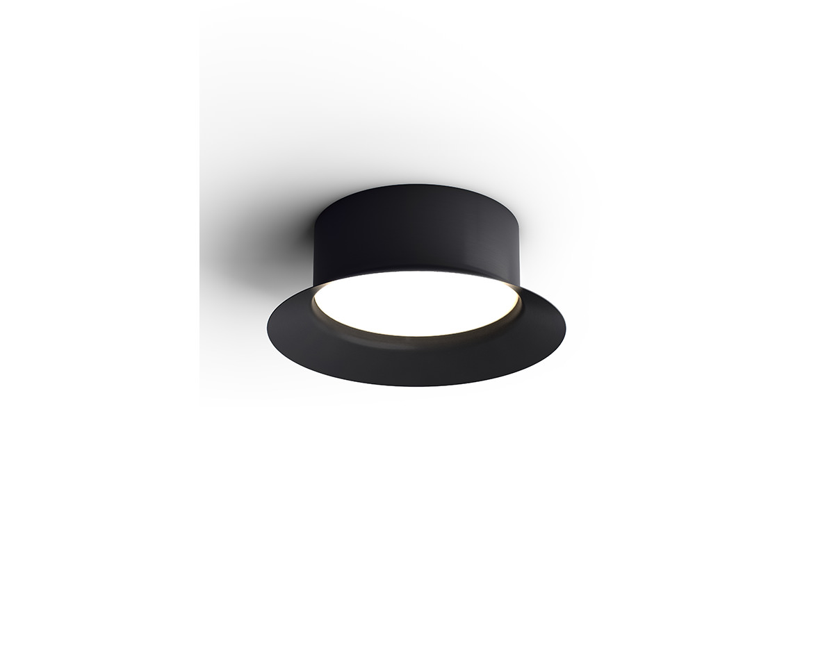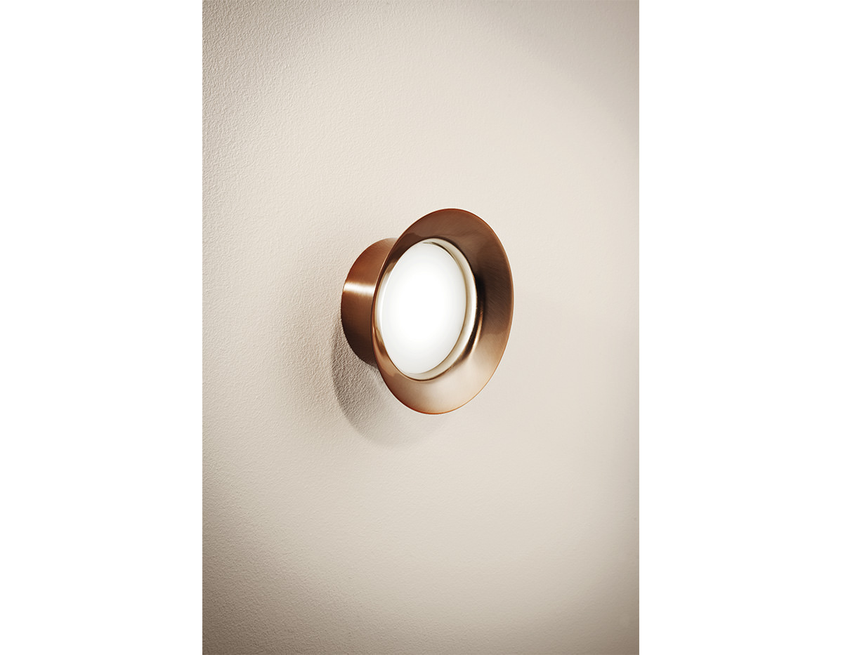 Metallic ceiling lamp or wall lamp with two different diameters. Acrylic diffuser and integrated dimmable LED.
