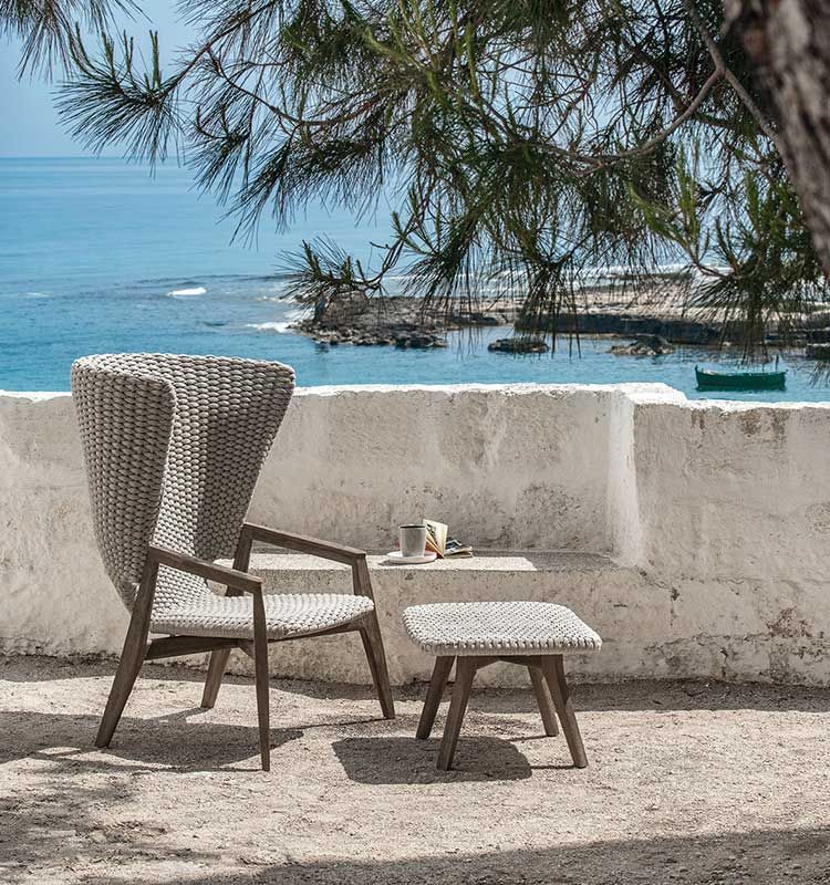 Kilt, the seat designed by Marcello Ziliani, available in versions with a teak or stainless steel structure, is able to express different looks and interpret the space that welcomes it.