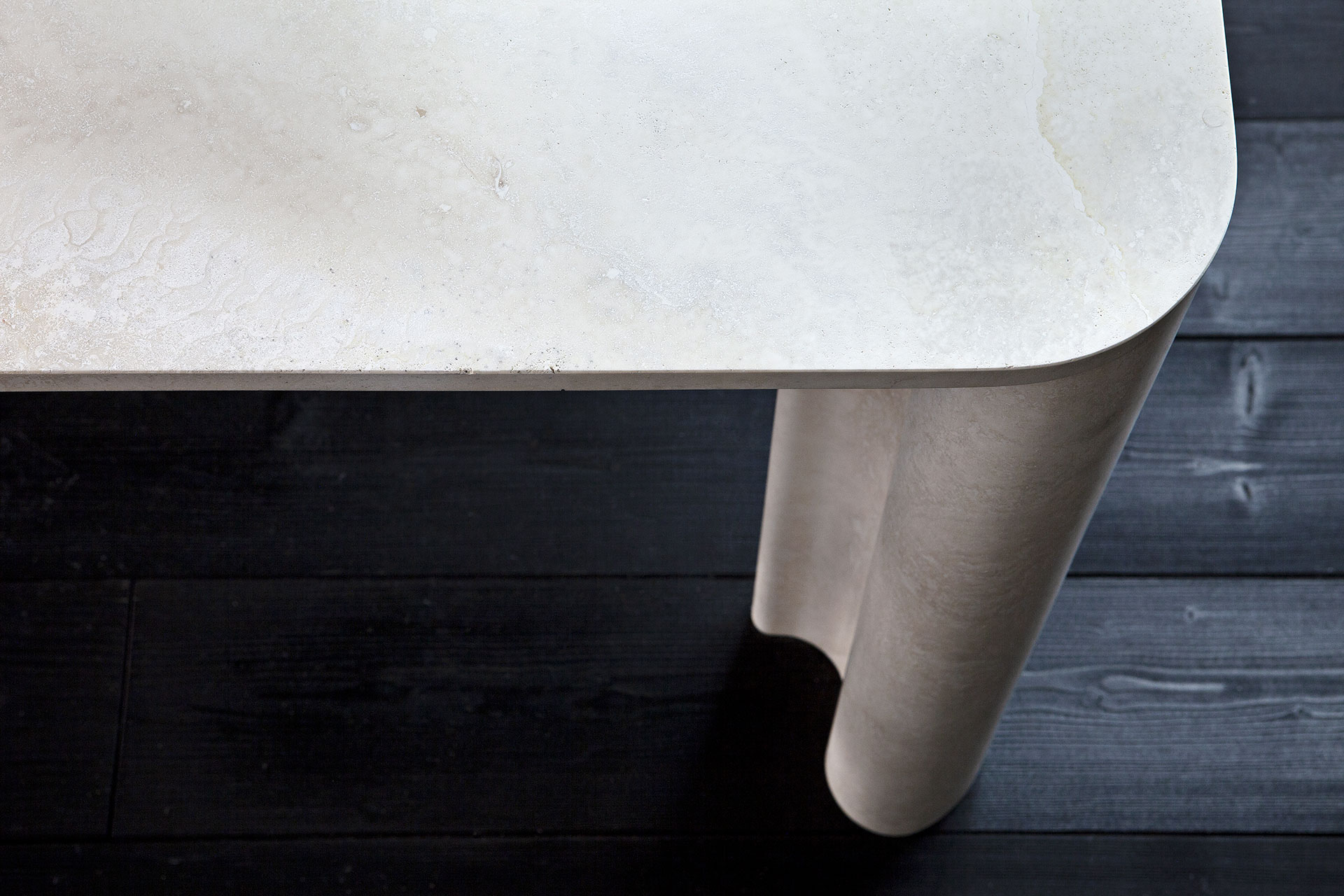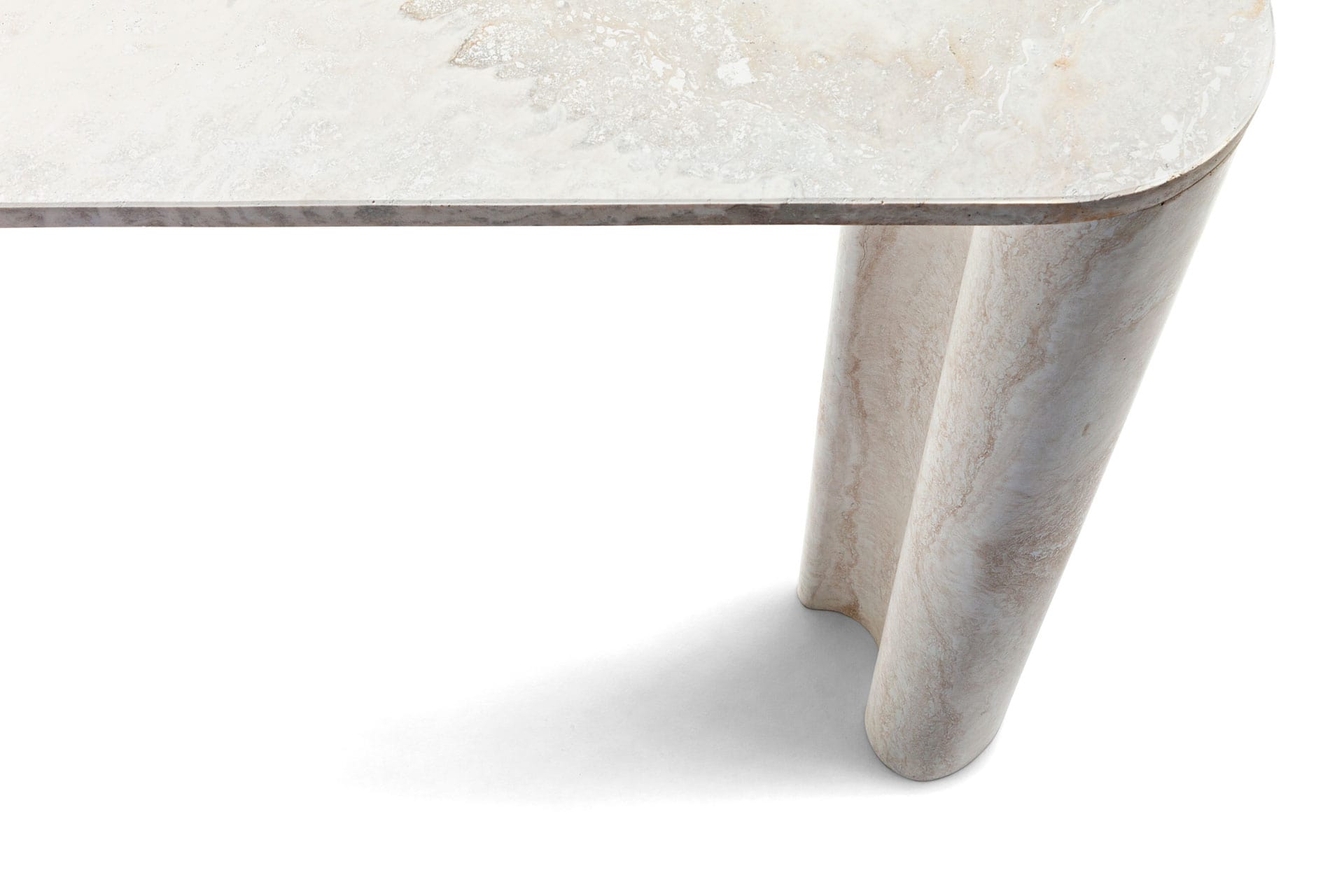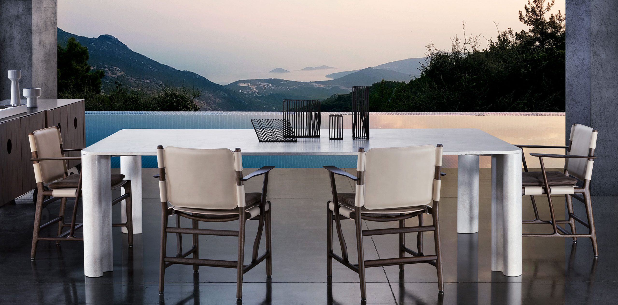 Michelangelo, the main table in the new Exteta collection, is a piece made entirely of marble with extraordinary elegance radiated by the material’s expressive power.