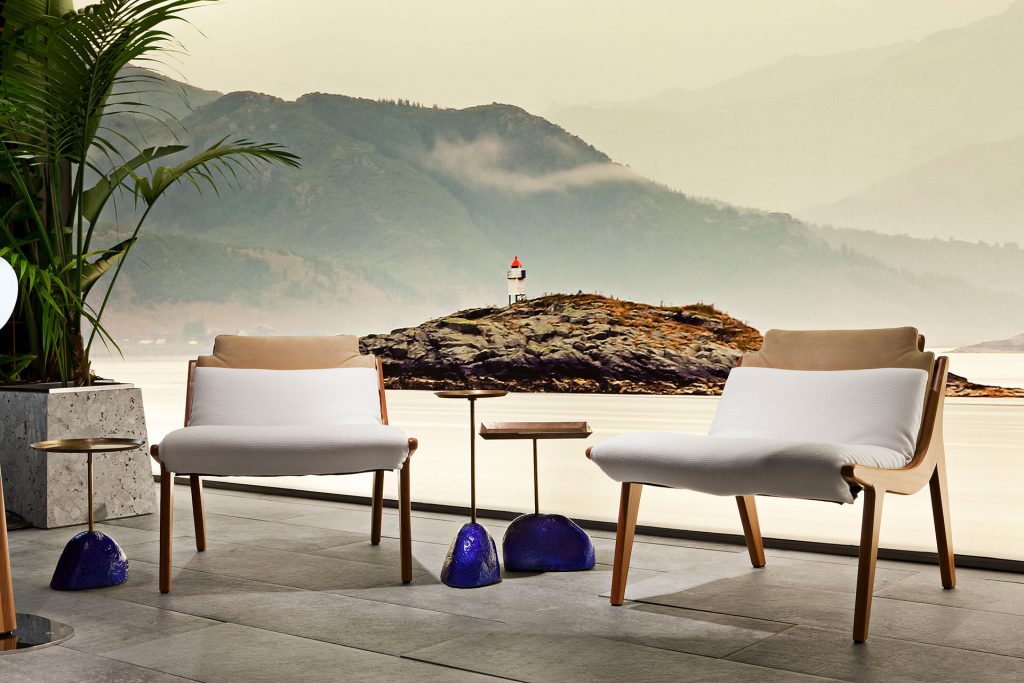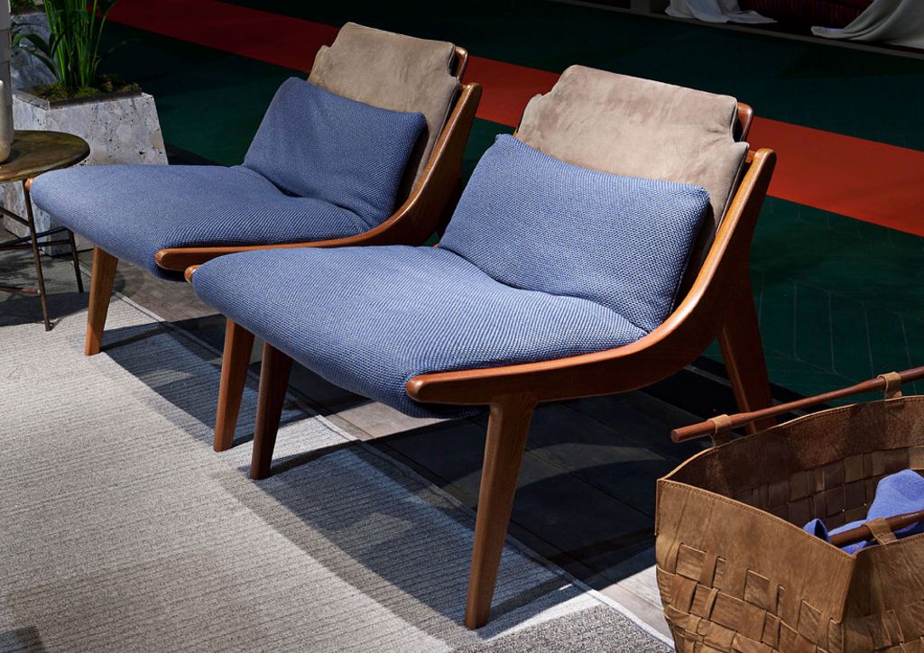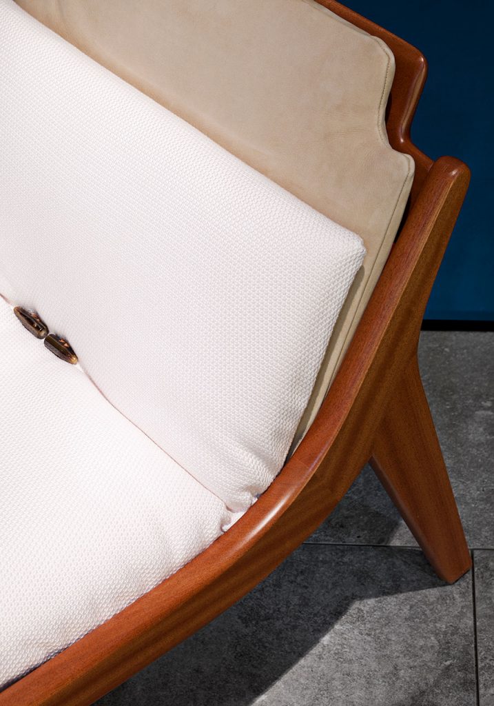 The important proportions of the structure and the upholsteredparts create a seat that brings the outdoor in a timeless dimension of elegance.
