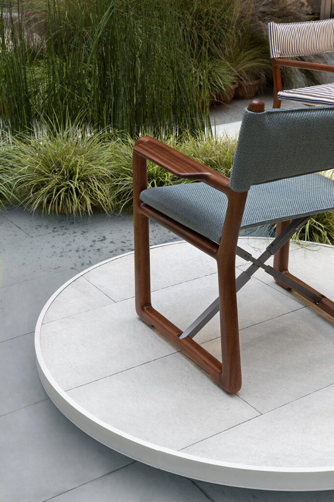 The elegance of Loro Piana in the choice of the fabric matches with the mastery of the Exteta wood with the LPIDC01 - Foldable Chair.