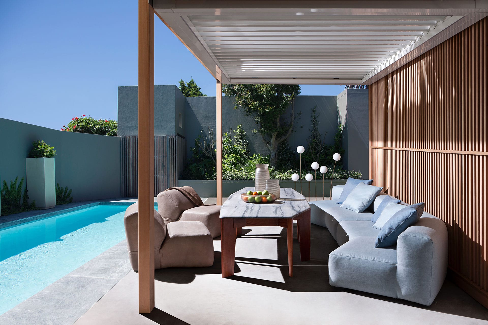 he structural polyurethane foam gives extra comfort and elegance with the external lining in outdoor fabric and outdoor leather.