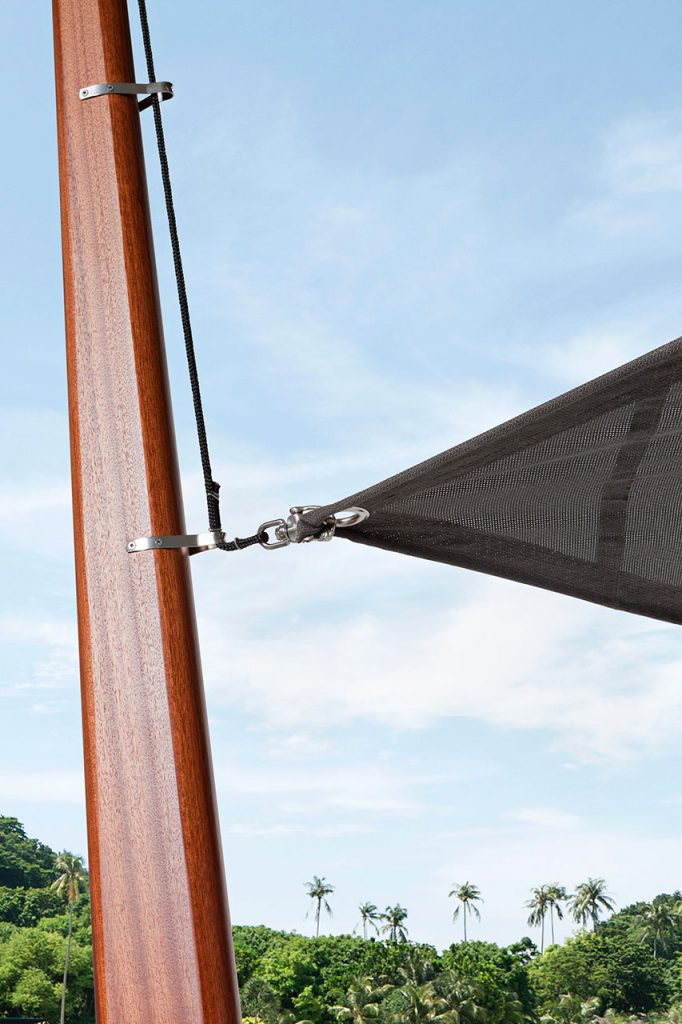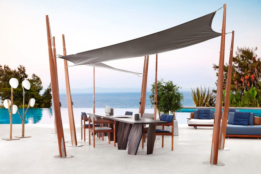 10th Butterfly is a refined micro-architecture in mahogany creating a comfortable and elegant space in the outdoor living. Recalling the nautical style, the curtains play with the structure in wood creating an irregular game of shadows going with the wind.