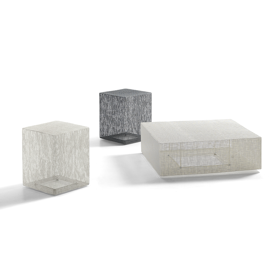 A light weave skillfully woven by the hands of skilled craftsmen. Thin, pressed, braided and varnished iron wires become warping in a game of transparency of solids and voids, a unique feature of these tables.