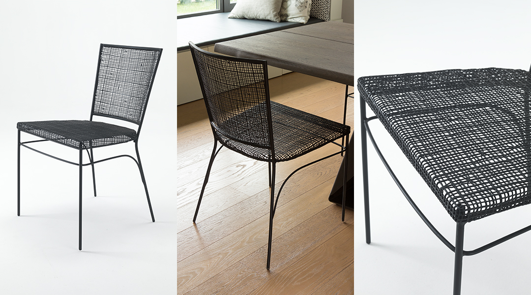 A dense interwoven iron weave supported by a light structure of solid iron rod gives life to the characteristic optical illusion of the GIULIA chair. Practical and light, but at the same time of great presence, this seat is well suited to industrial, public or private scenario, between wood and metal.