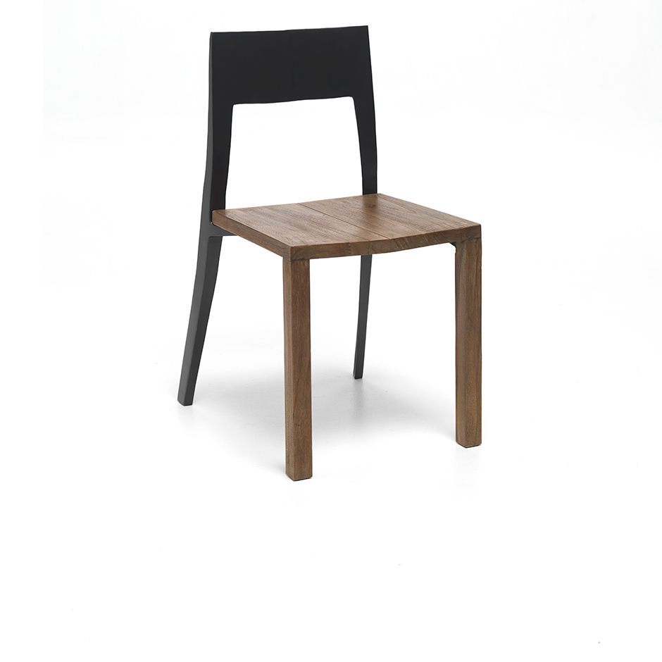 The successful material combination of teak and aluminum casting gives life to the NOA chair. Sober and elegant, composed of a seat and two front legs in solid recycled or silver teak, supported by the back and the rear legs in polished, brushed cast aluminum or in satin or diamond metallic finish, this sophisticated chair will find place in the most diverse environments.