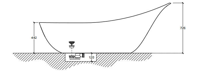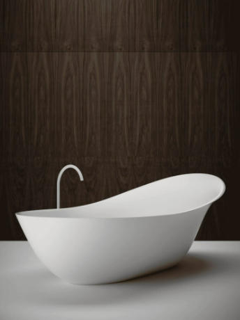 Vasca da bagno freestanding centrostanza in Cristalplant con dimensioni 174cm per 82cm. Porta salviette e bordo inferiore del basamento in metallo. Copri piletta in Cristalplant.