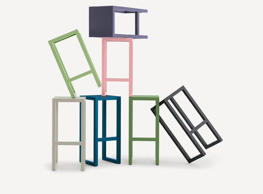 Gli sgabelli Frame hanno una forma solida e iconica. Abbinabili alle Frame Workbenches, sono disponibili in due altezze e costituiscono un complemento d’arredo trasversale grazie all’ampia palette Fantin, composta da 35 finiture, 15 delle quali adatte anche per l’outdoor: si può spaziare da una soluzione in grigio nuvola per un ambiente elegante e minimale, fino a un energico giallo melone per gli spazi più eclettici.