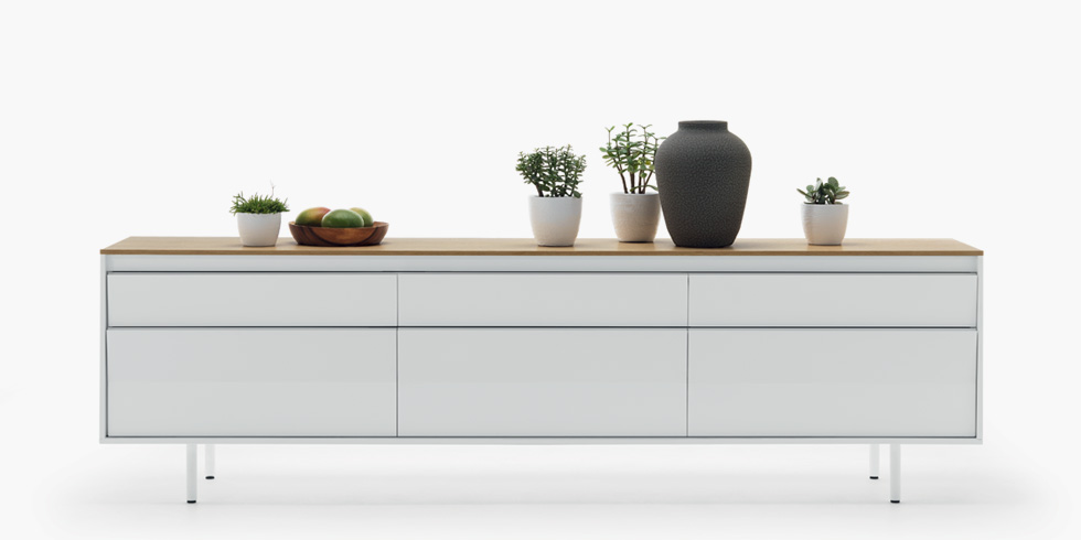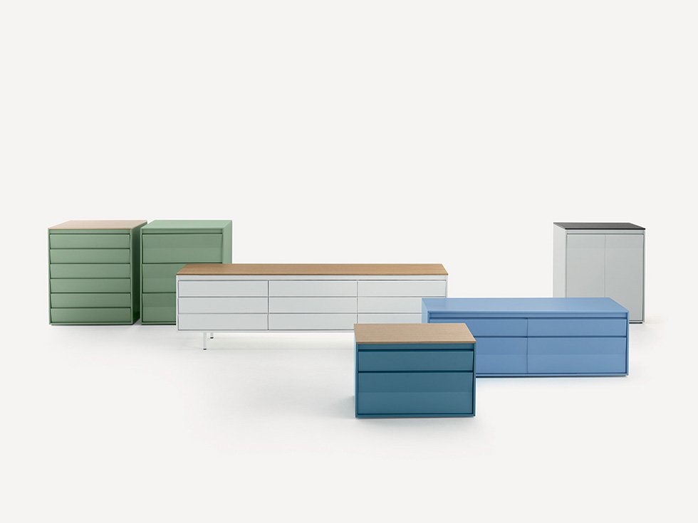 Ali Collection è composta da cassettiere e credenze che si caratterizzano dalla particolare presa maniglia che, da semplice elemento funzionale, si evolve ad elemento estetico. Il susseguirsi dei cassetti o delle ante, cadenzato da sfumature di luci ed ombre, è il punto di arrivo del pensiero progettuale. Le tante varianti dimensionali rendono Ali Collection adatta in tutti gli ambienti, sia a casa che in ufficio.