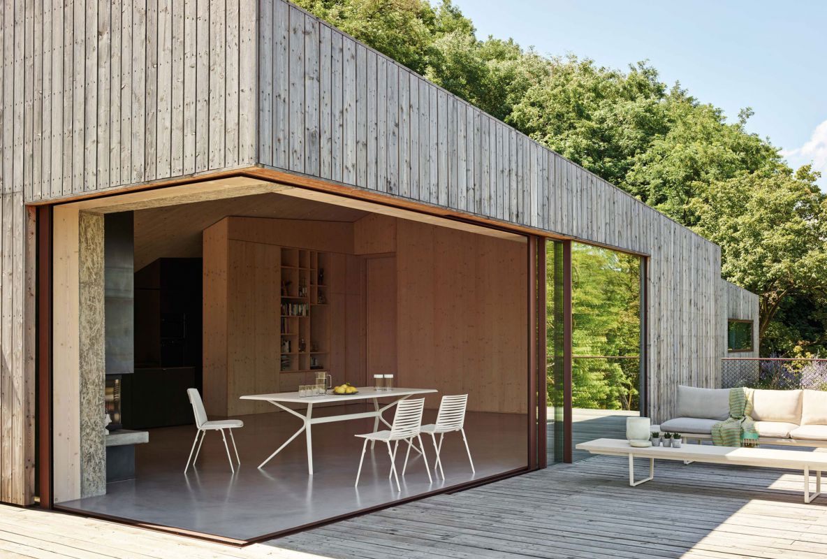 Versatility is the distinguishing feature of this collection of outdoor garden tables, which draws its inspiration from the peculiar shapes of the stone pine tree. The slimness of the frame is only apparent: the legs - like robust roots - in fact support elegant aluminium, speckled aluminium or stoneware table tops.