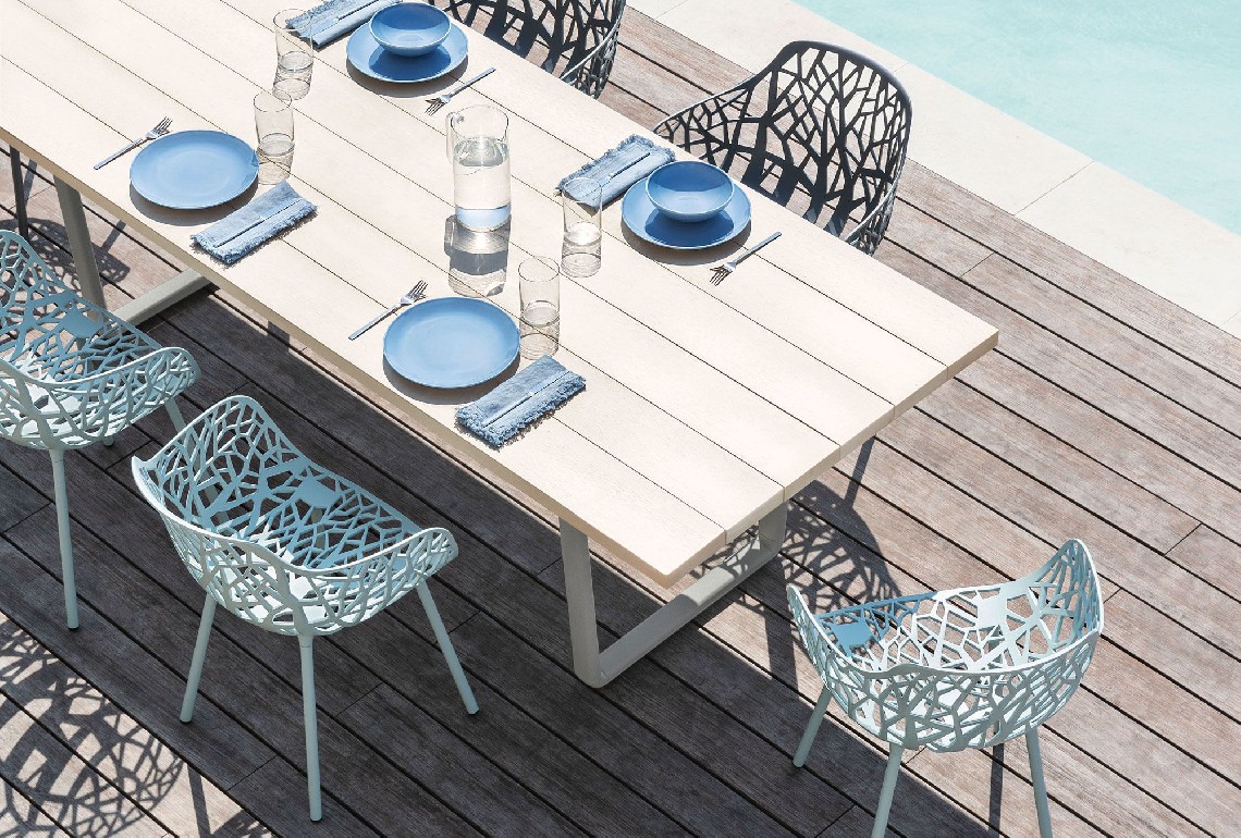 Nature and high performance are brought together by the unique “NaturAll” finish, which recreates warm, cosy wood, with its sophisticated texture and characteristic grain, at the same time as maintaining the functional benefits of aluminium. This product’s appearance brings to mind traditional, wooden garden furniture, at the same time as offering lightness, practicality and sun and weather resistance: all the qualities that make aluminium so versatile. Orizon tables and seats are highly customisable and are therefore able to fulfil even the most varied needs of the contract sector. The cushions - which are removable and are also available in a waterproof version - add further comfort to these benches, sofas and chaise-lounges.