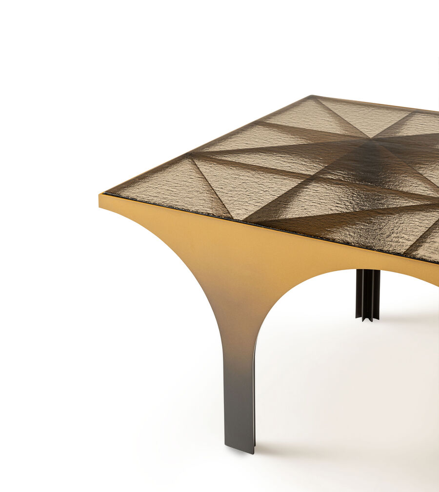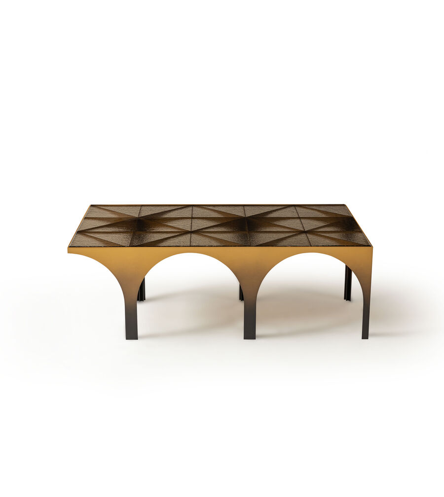 Arches of solids and void alternate with pleasing regularity in the legs of the Metropolis coffee table, made entirely in steel in a choice of elegant finishes. The visually light top in coloured glass combines to create an almost sculptural effect in this innovative piece by Atelier O?. Available in three formats, it brings a touch of urban chic to spaces ranging from the entrance way to the living room.