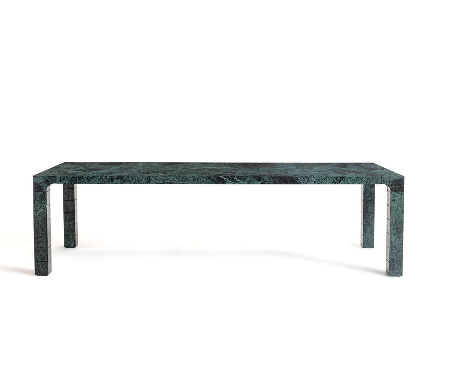 Inspired by ancient Roman monuments, the Petra table is a striking piece of pared-back design. Available in marble or a combination of marble and wood, both variants feature carved legs that evoke the iconic arches of the Palazzo della Civiltà Italiana in Rome. The combination of elements in marble or marble with wood makes for a piece that fits effortlessly into elegant, sophisticated décors. Available in two sizes.