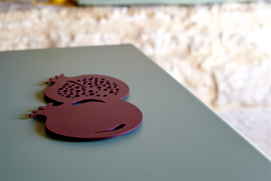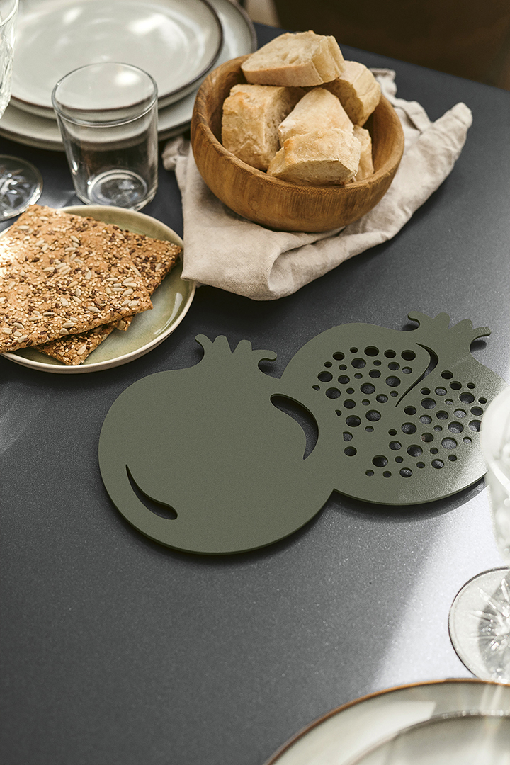 Avec son motif hérité du monde végétal, le dessous de plat Grenade Basics n'est pas sans rappeler le fruit dont il porte le nom. Cette ressemblance s'applique également aux coloris dans lesquels il se décline.