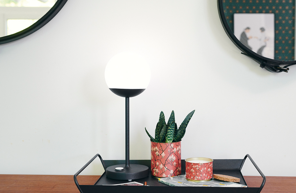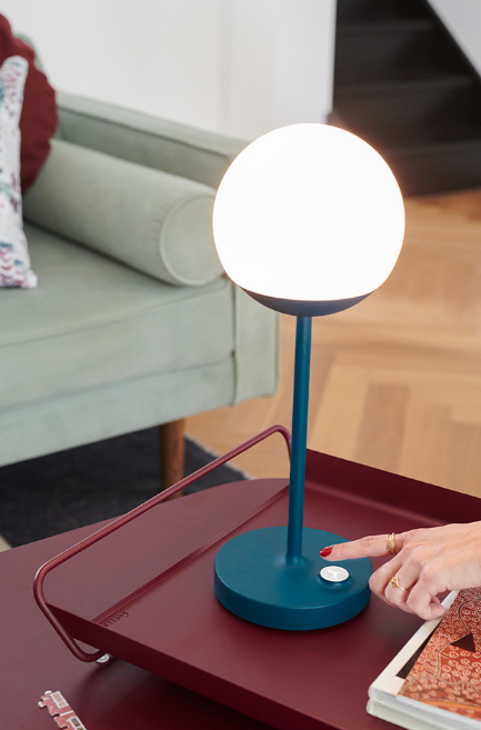 La collection de luminaires MOOON ! permet à Fermob de continuer à s'imposer comme leader sur le marché des lampes sans fil. La lampe H.41 Mooon! allie un design soigné aux lignes fluides à de riches fonctionnalité