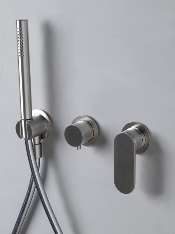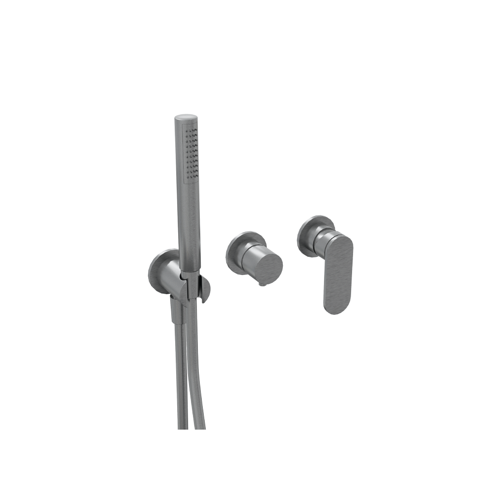 Shower set: concealed mixer, diverter and showerhand with support