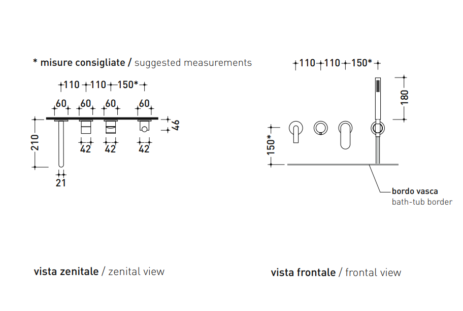 Concealed bath set with spout, mixer and handshower
