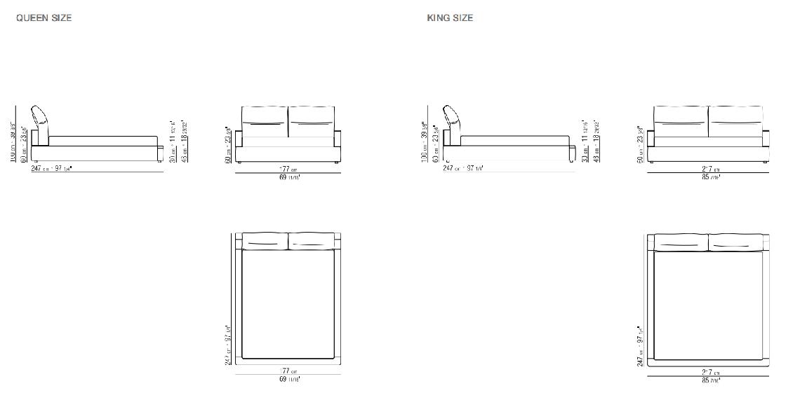 Newbridge床的特點在于簡約的金屬床頭板,呈獨特的C型截面,表面覆蓋皮革,配有實用的卡納萊托胡桃木或歐洲白蠟木擱板或抽屜,有多種表面處理工藝可選。 風格嚴謹的床頭板,與填料豐厚的床邊板和床頭靠枕形成對比。床頭靠枕可傾斜,為閱讀或看電視提供舒適的半躺姿勢。 Newbridge床有不同尺寸供應,底座可選擇的款式包括:僅有床邊板、堅硬底座、高度可調節床板架底座與收納柜底座,收納柜可放置枕頭、被子與床品。