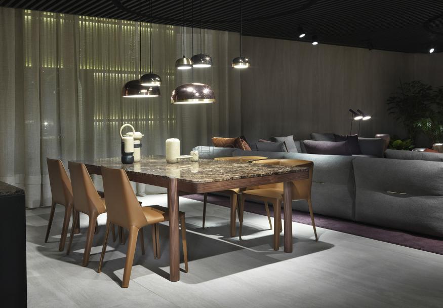 Gustav桌子的設(shè)計顯示出對考究細(xì)節(jié)的追求,以實木雕花桌腿與桌板的嵌接為代表。這一細(xì)節(jié)看似簡單,卻蘊(yùn)藏著桌面的復(fù)雜構(gòu)造。 Gustav桌子有圓形和長方形兩個版本,并有不同尺寸,提供一系列的原創(chuàng)材質(zhì)搭配,可選擇多種顏色的卡納萊托胡桃木或歐洲白蠟?zāi)窘Y(jié)構(gòu)搭配Carrara白色、Marquinia黑色、Calacatta金色和 Emperador黃色等款式的大理石桌面。