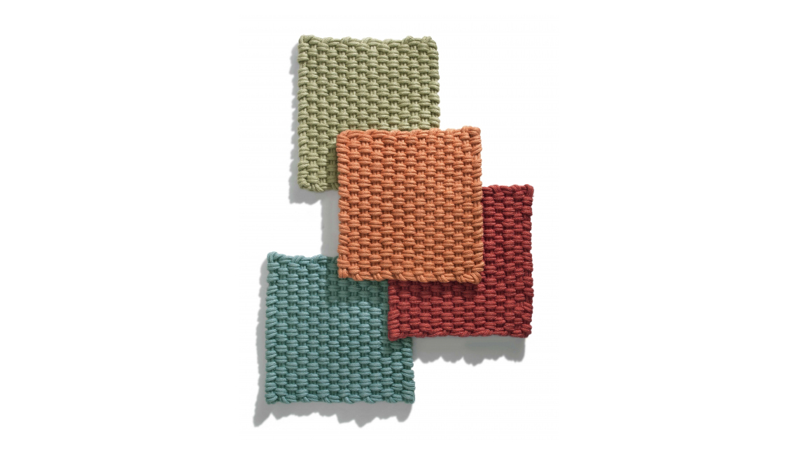 Colorado地毯采用特別的手工編織塑料制作,這種材料來自PET塑料瓶的循環再用。這是一種防水透氣的材料,使得Colorado地毯可放置于戶外環境,例如陽光房和露臺。Colorado地毯為定制產品,該系列具有多種顏色,可與戶外系列的織物顏色一致。