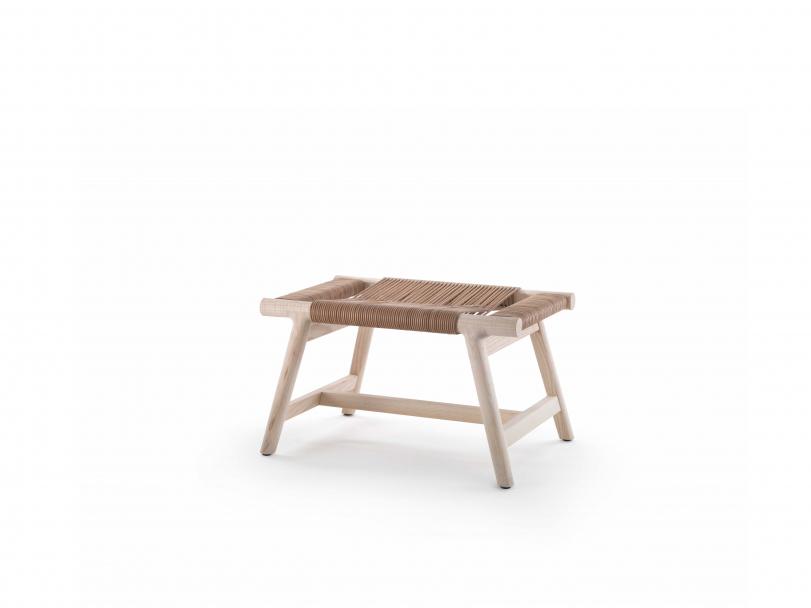 這是一款小巧的凳子,卻具有鮮明的個(gè)性。設(shè)計(jì)造型簡潔,化為精雕細(xì)琢的工藝,呼應(yīng)著木工傳統(tǒng)。 其結(jié)構(gòu)完全由卡納萊托胡桃木或歐洲白蠟?zāi)局圃欤卸喾N色彩可選,優(yōu)雅的喇叭型線條,使之成為一款外觀輕巧的凳子。 上部采用了考究獨(dú)特的加工手法,特別的編織完全以手工制作,以一根皮革繩索構(gòu)成。 Giano凳子是一件功能性強(qiáng)的美物,可稱為客廳裝飾的一件實(shí)用配飾。