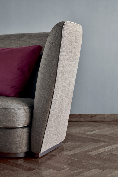這款沙發(fā)體型龐大,引人矚目,注定會在任何環(huán)境中扮演主角,無論是家居或是公共接待空間,例如大堂或休閑吧。沙發(fā)結構為木制,內有大量的延展性聚氨酯和滌綸填充物,表面覆蓋著雙層保護織物。靠背高聳,線條環(huán)繞身體,顯得莊重高大,容納著多個坐墊,凸顯了Altea沙發(fā)的裝飾性特點。覆蓋面料邊緣帶有一道羅緞鑲邊,可采用同色或撞色對比。