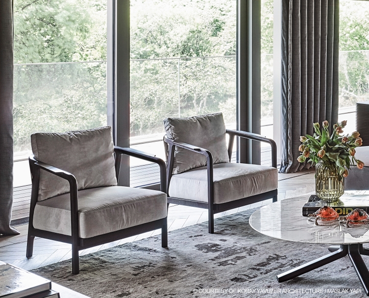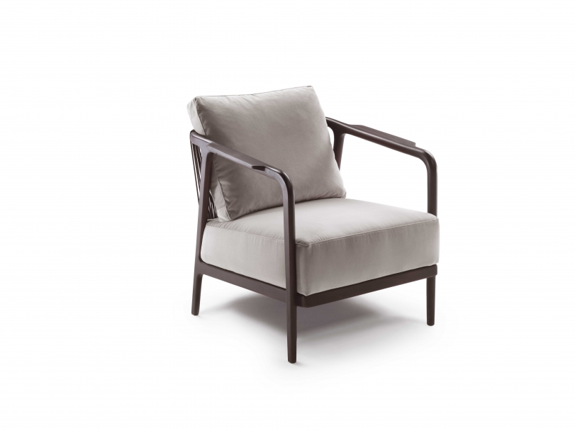 Crono扶手椅的特點在于精致的設計與優雅的比例。 輕盈結實的實木框架采用的是卡納萊托胡桃木或歐洲白蠟木實木,有多種顏色可選,考究的加工清晰展現了品牌傳承意大利木工傳統的態度。 靠背經過獨特考究的加工,具有特別的手工皮革繩索編織;柔軟的鵝絨填充靠墊令坐姿更舒適。延展性聚氨酯填充坐墊表面覆蓋雙層織物,并配有織物或真皮的可拆卸椅套。