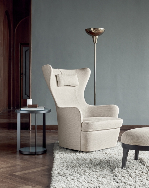 Elisabeth扶手椅體格寬敞,填料豐厚,具有古典韻味,同時又加入了極富當代感的細節,例如旋轉底座,令其可輕易調節方向。Elisabeth是一款法式安樂椅,具有獨樹一幟的個性,可和諧融入任何環境,客廳臥室皆宜,可搭配Flexform Mood系列的所有沙發。