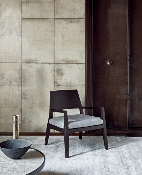 Ludovica扶手椅風格嚴肅,令人想起夏克傳統的冷峻設計。堅固的實木結構滿足純粹的功能需求,毫無矯飾,盡管扶手上帶有皮革裝飾。坐墊帶有輕盈的絎縫,勾勒出現代的幾何格紋。