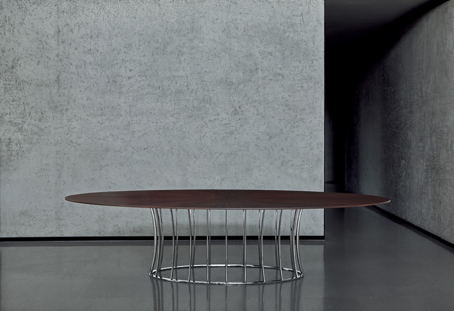 Arthur系列包括桌子與茶幾,空靈的金屬底座設計考究,承托起圓形或橢圓形的臺面。 造型性感,表面處理工藝豐富多樣,Arthur桌子展現出令人眼前一亮的個性特點,金屬底座與臺面可呈現不同的組合,底座表面處理工藝有磨砂、鍍鉻、黑鉻、磨光、鍍銅和香檳色,而桌面則有多種精致顏色的天然橡木款或名貴大理石款。