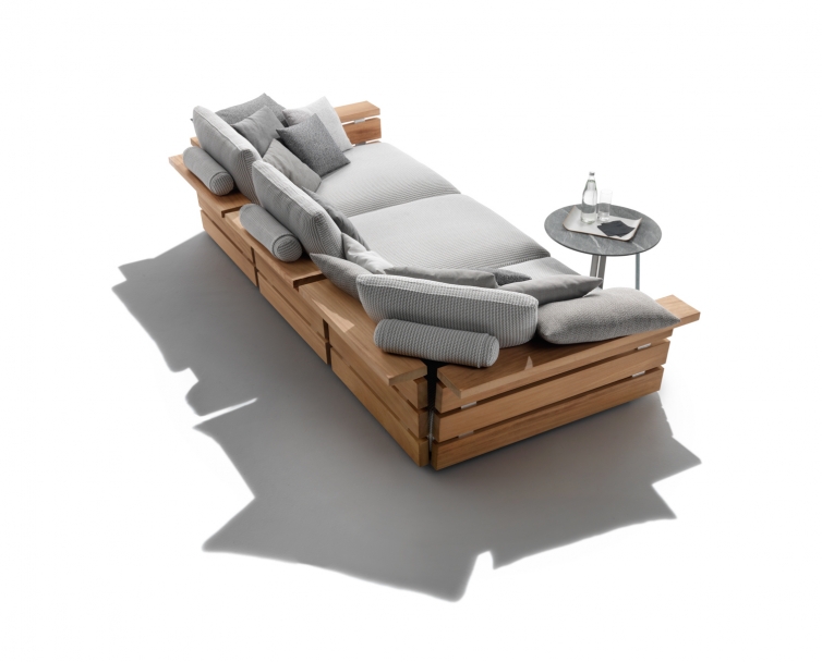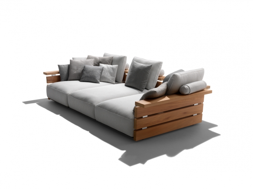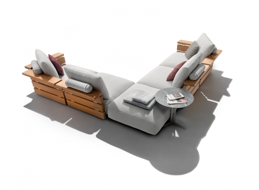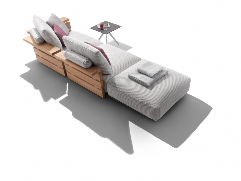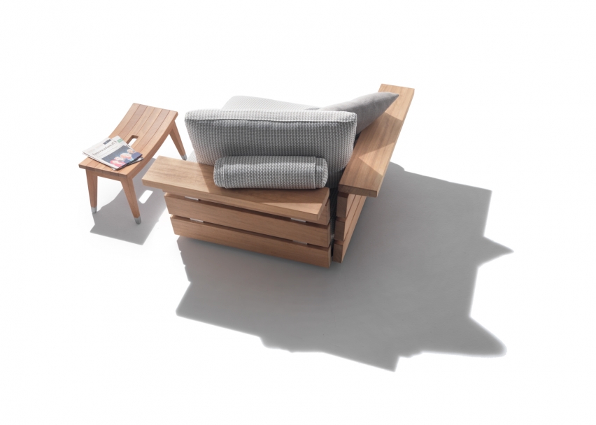 靠背坐墊帶有獨(dú)特的軟墊–隨著時(shí)間的推移,它已成為公司的獨(dú)特元素之一。它靠在iroko結(jié)構(gòu)上,可提供特別有支撐力的背部舒適感。
