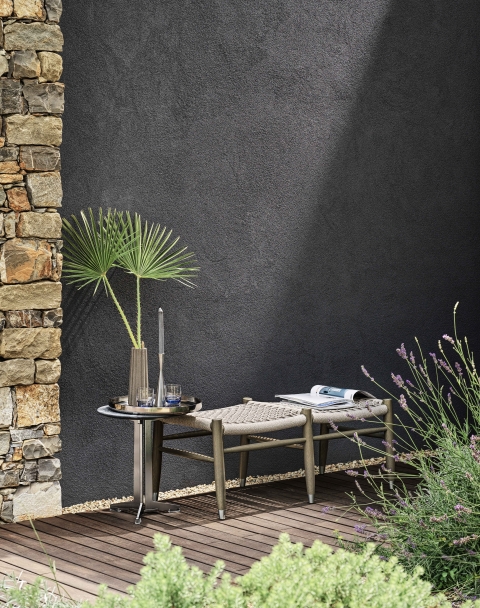 Tessa Outdoor系列包括扶手椅,腳凳,長椅和茶幾。臺式機的選擇范圍包括Beola Argentata,Pietra del Cardoso,Lava和Porphyry。