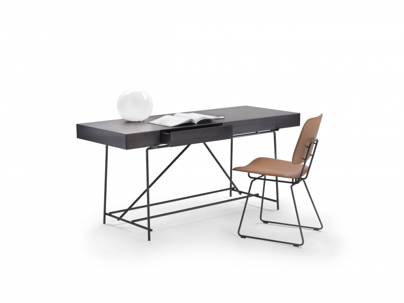 The basic idea was to set a piece of wood on a simple metal structure. The first items to grow out of this concept were a coffee/side table and a console, followed by a dining table, desk and a series of cabinets.